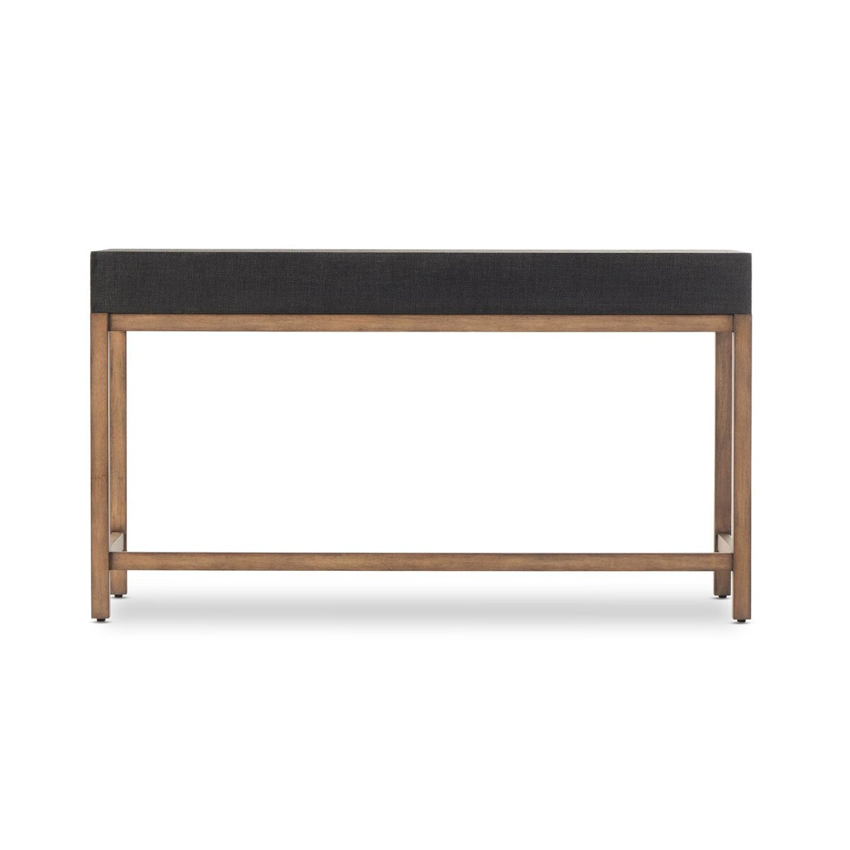 Overall Dimensions 55.00"w x 23.00"d x 30.50"hItem Number 233438-001Colors Black Raffia, Russet Mahogany, Light Antique BrassMaterials Sugar Palm, Solid Mahogany, SteelWeight 88.62 lbVolume 40.26 cu ftClearance from Floor 1 4.00"Distance between Legs (Front to Back) 1 20.00"Distance between Legs (Side to Side) 1 52.00"Drawer Depth 1 13.25"Drawer Height 1 2.00"Drawer Width 1 15.75"Leg/Base Depth 1 23.00"Leg/Base Height 1 25.50"Leg/Base Width 1 55.00"Opening for Seating Height 23.33"Tabletop Thickness 5.00"Can Be Floated YesDoor Type No DoorsDrawer Glide Color SilverDrawer Glide Type Undermount MetalDrawer Joinery English DovetailDrawer Quantity 3.00Drawer Stop Material MetalFrame Construction Joinery Bore and DowelFrame Construction Joinery Corner-block/CleatFrame Construction Joinery English DovetailFrame Construction Joinery Frame and Panel ConstructionFrame Construction Joinery Mortise and TenonFunctionality DrawersHas Leveler YesHas Soft Close Drawers YesProtective Feet Leg LevelersShape Type WritingSuite FionaWeight Capacity 100 lb