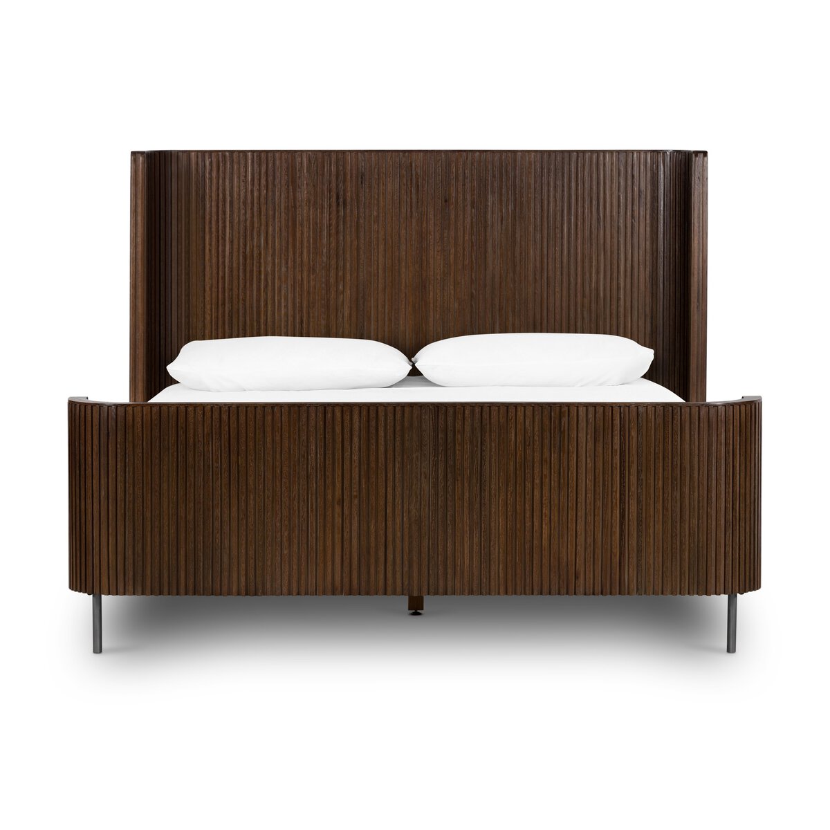 Overall Dimensions 80.00"w x 85.00"d x 45.25"hItem Number 108786-001Colors Terra Brown Oak, Terra Brown Oak VeneerMaterials Solid Oak, Oak VeneerWeight 251.32 lbVolume 43.54 cu ftClearance from Footboard 5.91"Clearance from Headboard 5.91"Clearance from Side Rails 5.91"Distance between Slats 2.76"Floor to Top of Slat Height 13.78"Footboard Height 23.62"Footboard Thickness 8.27"Footboard Width 79.92"Headboard Height 45.28"Headboard Thickness 8.27"Headboard Width 79.92"Interior Dimension for Mattress Depth 81.50"Interior Dimension for Mattress Height 2.36"Interior Dimension for Mattress Width 76.77"Side Rails Height 10.24"Side Rails Length 68.90"Side Rails Thickness 1.57"Slat Width 2.76"Bed Backing Sealant/Stain (Can’t be floated)Bed Material WoodBox Spring Required Not RequiredDrawer Glide Type NoneDrawer Stop Material NoneFrame Construction Joinery Corner-block/CleatFrame Construction Joinery Mortise and TenonFunctionality NoneHas Slats YesSize KingSlat Type Slat RollSuite FletcherWeight Capacity 550 lb