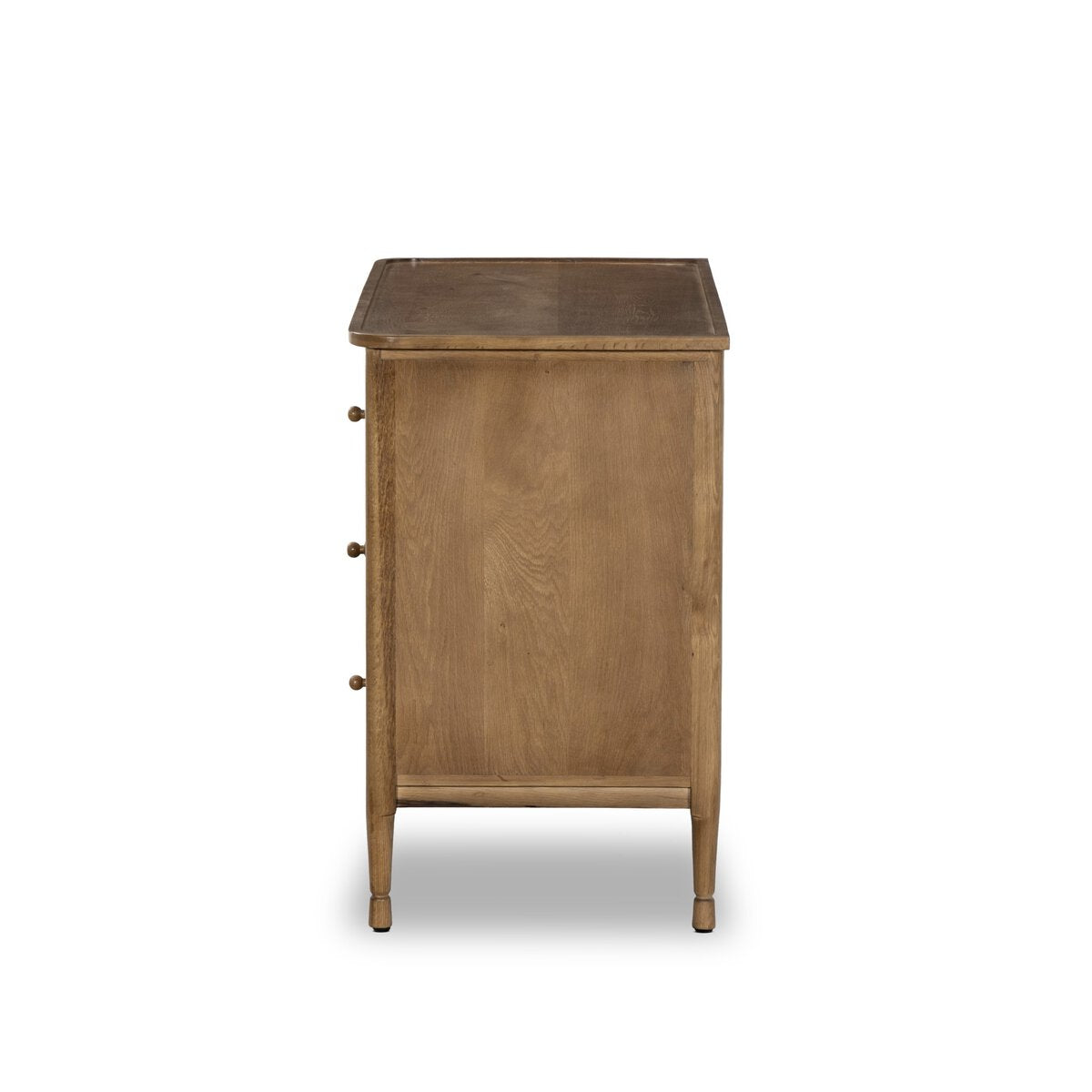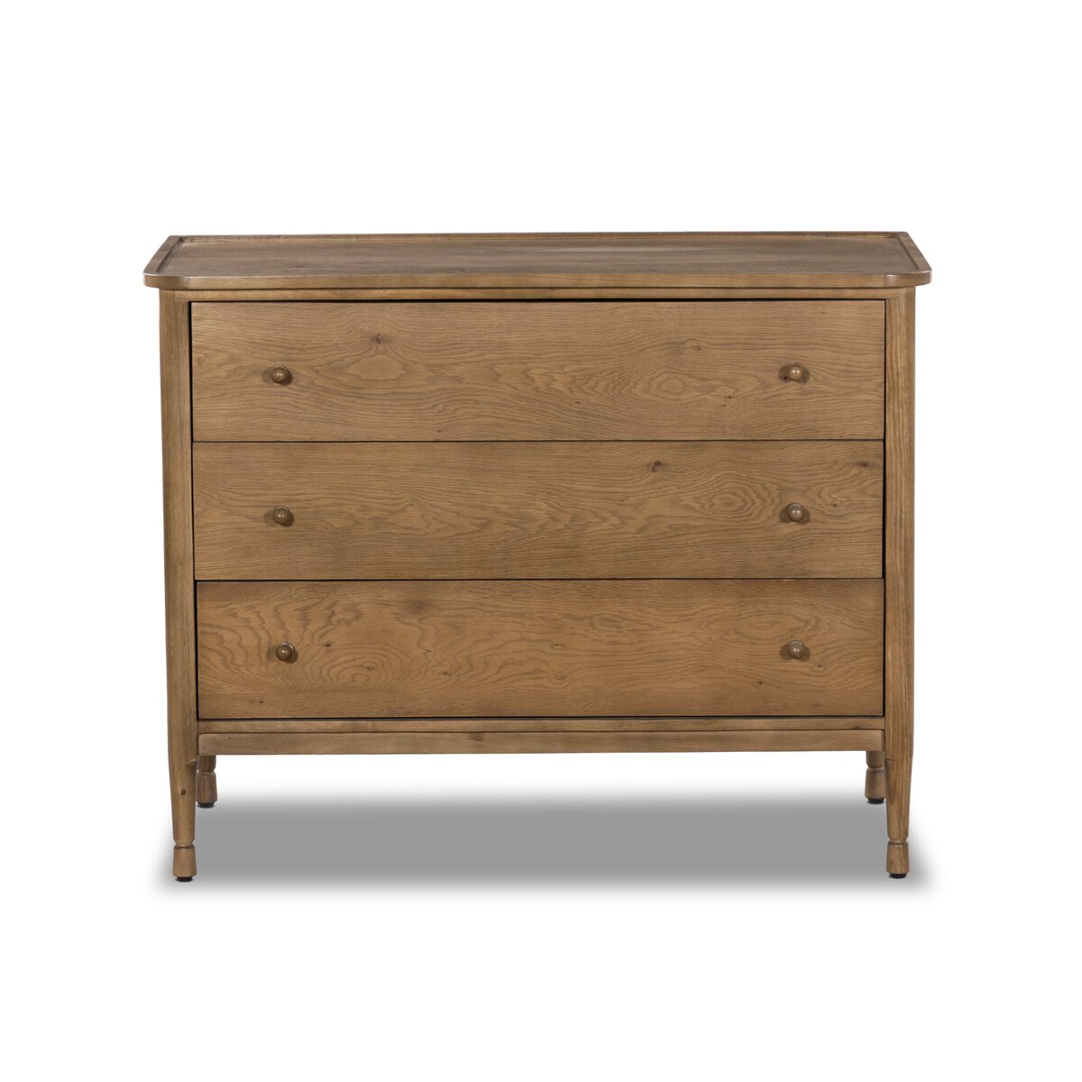 Overall Dimensions 45.00"w x 22.00"d x 35.00"hItem Number 249115-001Colors Saddle Brown VeneerMaterials Oak Veneer, Solid OakWeight 154.32 lbVolume 29.73 cu ftClearance from Floor 1 7.50"Drawer Depth 1 15.00"Drawer Height 1 6.25"Drawer Width 1 37.50"Anti-Tip Kit Included? YesDoor Type No DoorsDrawer Glide Color SilverDrawer Glide Type Undermount MetalDrawer Joinery French DovetailDrawer Quantity 3.00Drawer Stop Material PlasticFrame Construction Joinery Mortise and TenonFunctionality DrawersHas Leveler YesHas Soft Close Drawers YesProtective Feet Leg LevelersShape Type ChestSuite FrannyWeight Capacity 100 lb