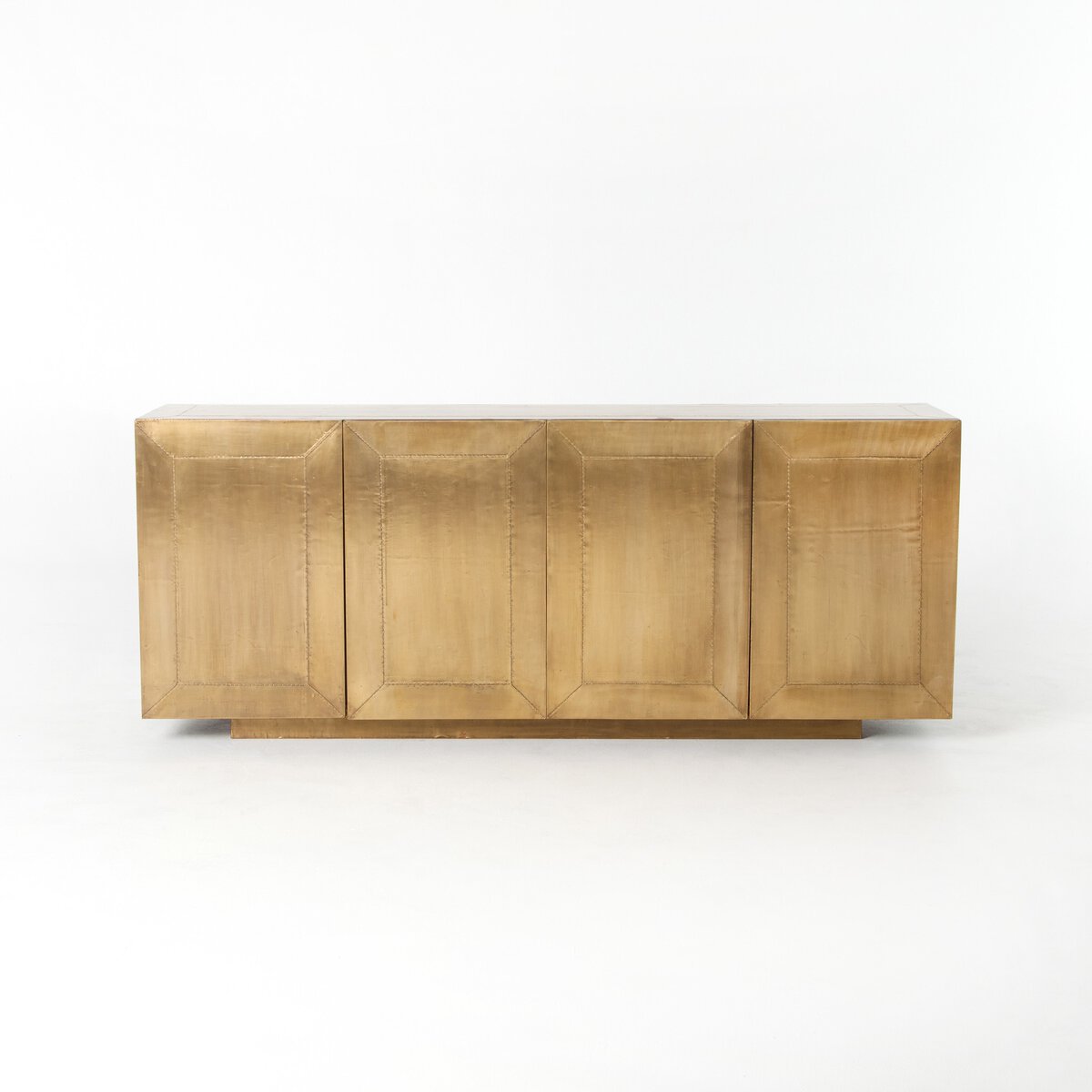 Overall Dimensions 72.00"w x 18.00"d x 29.00"hItem Number IRCK-160Colors Brushed Brass Clad, Grey NaturalMaterials Brass, Thick Mango VeneerWeight 187.37 lbVolume 31.01 cu ftClearance from Floor 1 2.75"Door Height 1 26.25"Door Thickness 1 0.75"Door Width 1 18.00"Fixed Shelf Depth 1 16.00"Fixed Shelf Height 1 0.63"Fixed Shelf Width 1 17.25"Interior Section Depth 1 16.00"Interior Section Height 1 12.88"Interior Section Width 1 17.25"Door Qty 4.00Door Type HingedDrawer Glide Type NoneDrawer Stop Material NoneFixed Shelf Qty 4.00Fixed Shelves YesFunctionality DoorsFunctionality ShelvesHinge Type CabinetryInterior Section Quantity 8.00Protective Feet Leg LevelersRecommended Shelf Capacity (kg) 18.14Recommended Shelf Capacity (lbs) 40.00Suite FredaWeight Capacity 200 lb