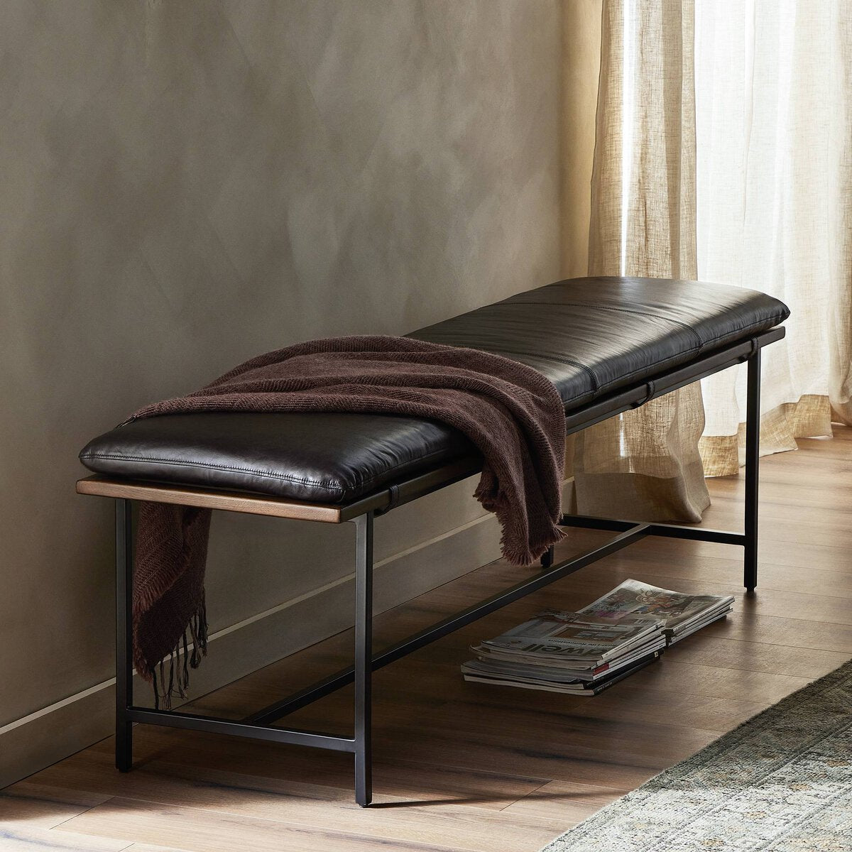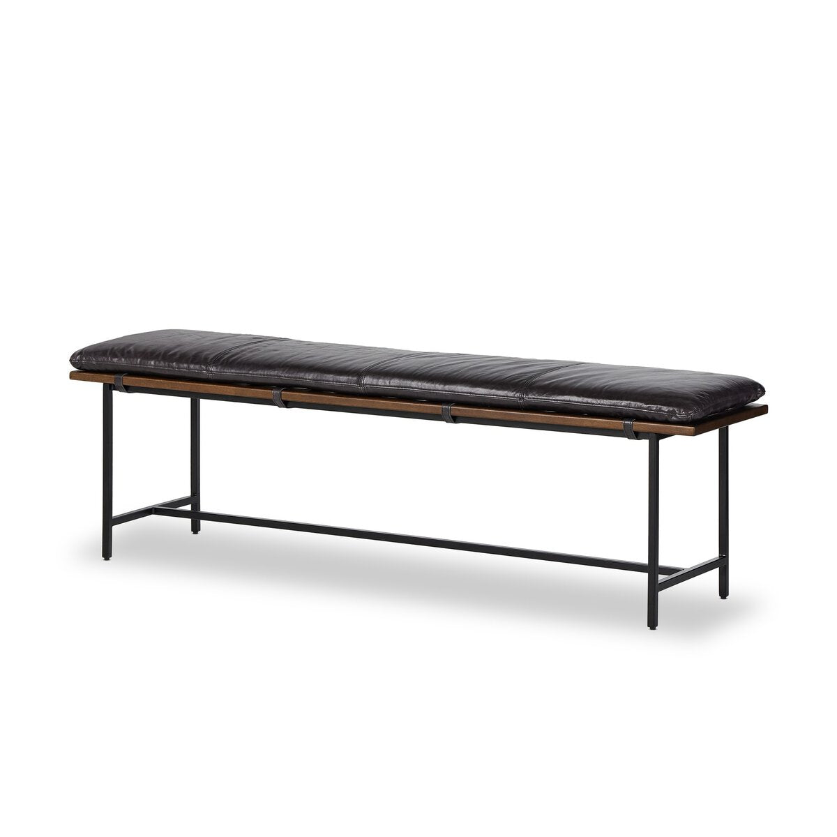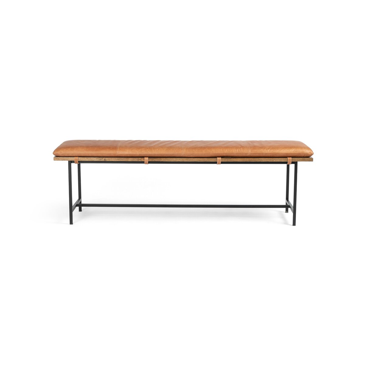 Overall Dimensions 72.00"w x 18.00"d x 22.00"hItem Number 108422-001Colors Brandy, Midnight Iron, Toasted OakMaterials Top Grain Leather, Iron, Solid OakWeight 43.81 lbVolume 22.11 cu ftClearance from Floor 1 3.15"Distance between Legs (Front to Back) 1 15.75"Distance between Legs (Side to Side) 1 62.20"Seat Cushion Depth 1 17.91"Seat Cushion Thickness 1 2.95"Seat Cushion Width 1 72.05"Seat Depth 1 17.91"Seat Height 1 22.05"Seat Width (Back) 72.05"Seat Width (Front) 72.05"Seat Width 1 72.05"Chair Arm Option ArmlessCleaning Code
