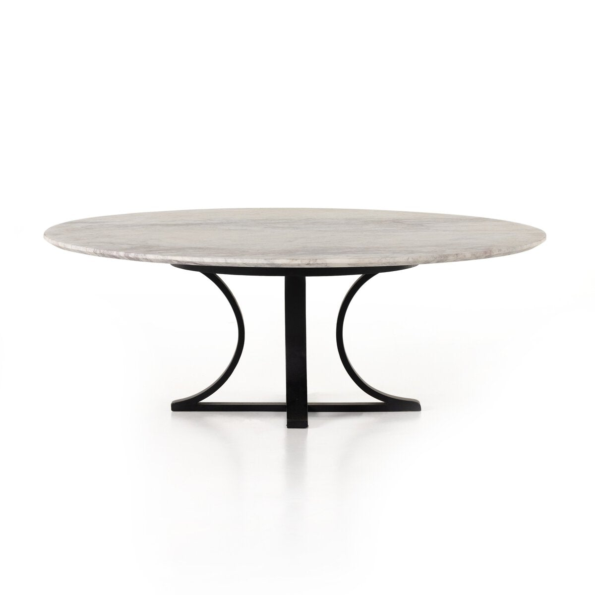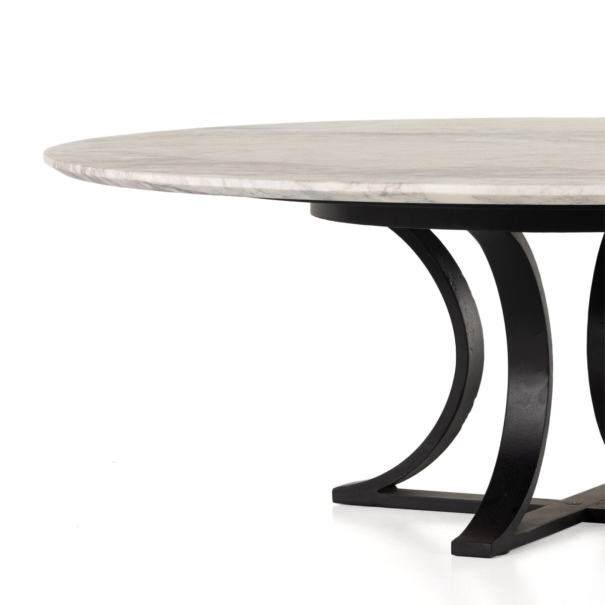 Overall Dimensions 48.00"w x 48.00"d x 17.00"hItem Number 224930-005Colors Polished White Marble, Dark Kettle BlackMaterials Solid Marble, IronWeight 246.80 lbVolume 22.81 cu ftClearance from Floor 1 16.38"Leg/Base Depth 1 24.00"Leg/Base Height 1 16.38"Leg/Base Width 1 24.00"Overhang Width 1 12.01"Tabletop Thickness 0.63"Weight Capacity 100 lb