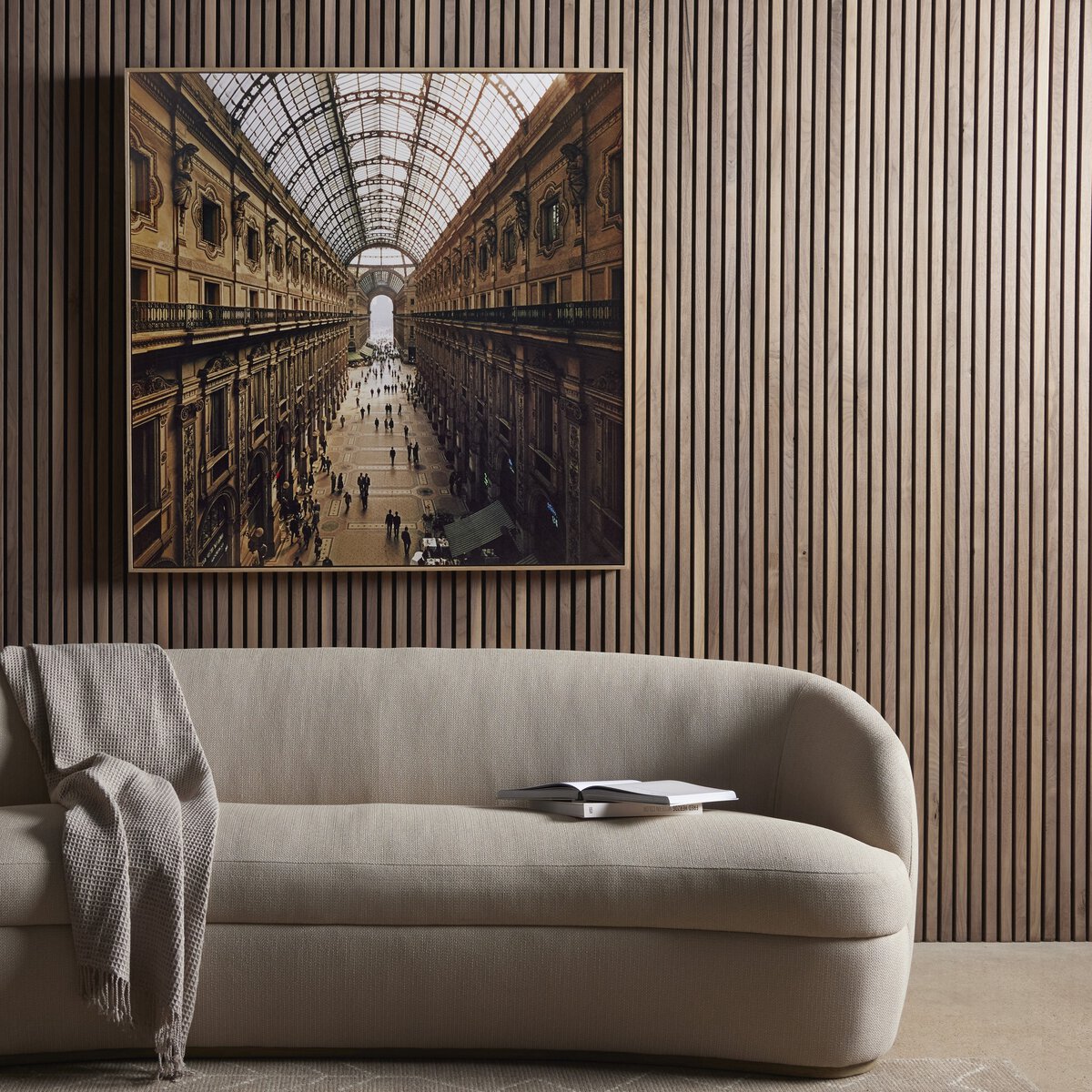 Overall Dimensions 24.00"w x 2.00"d x 24.00"hItem Number 235525-002Colors Vertical Grain White Oak Floater, Gloss White MetalMaterials Vertical Grain White Oak Floater, Gloss White ChromaluxeWeight 15.00 lbVolume 1.94 cu ftArtist Slim AaronsMain Color MixedOrientation SquarePresentation Style Framed MetalSize SmallSubject ArchitecturalSuite Galleria Vittorio Emanuele