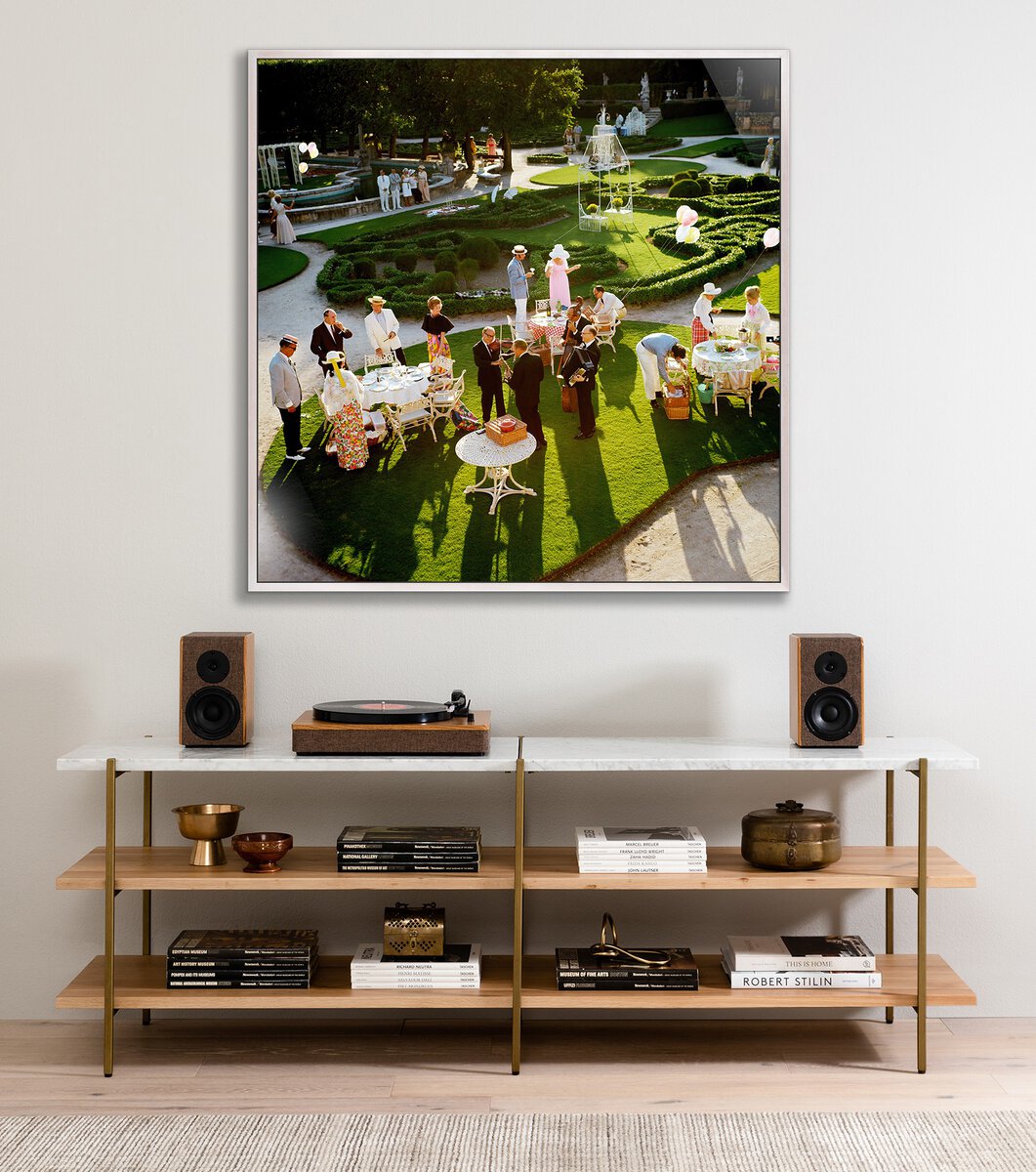 This specially selected work from the late influential photographer Slim Aarons is printed using ultra-modern ChromaLuxe technology for the first time ever. High in definition and gloss, images are printed in vibrant, saturated color on fade- and scratch-resistant recycled aluminum. Each is float-mounted with hand-selected framing designed to complement the print. Handmade in Austin, Texas, each piece includes a certificate of authenticity commemorating the partnership between Slim Aarons, Getty Images Gallery and Four Hands Art Studio. Photo courtesy of Getty Images.