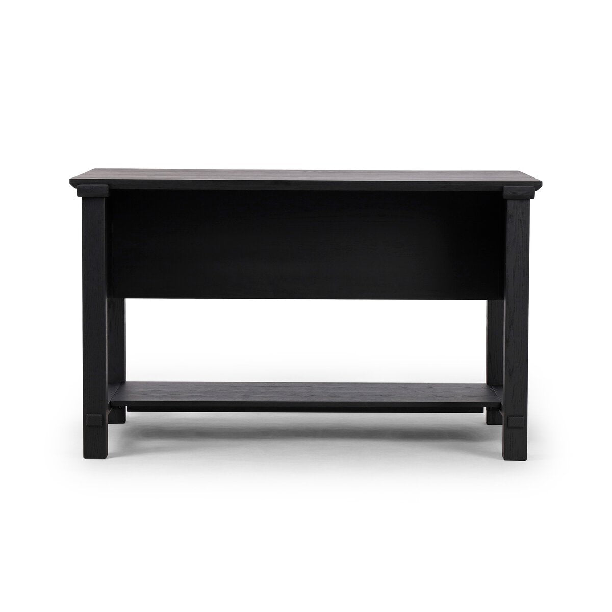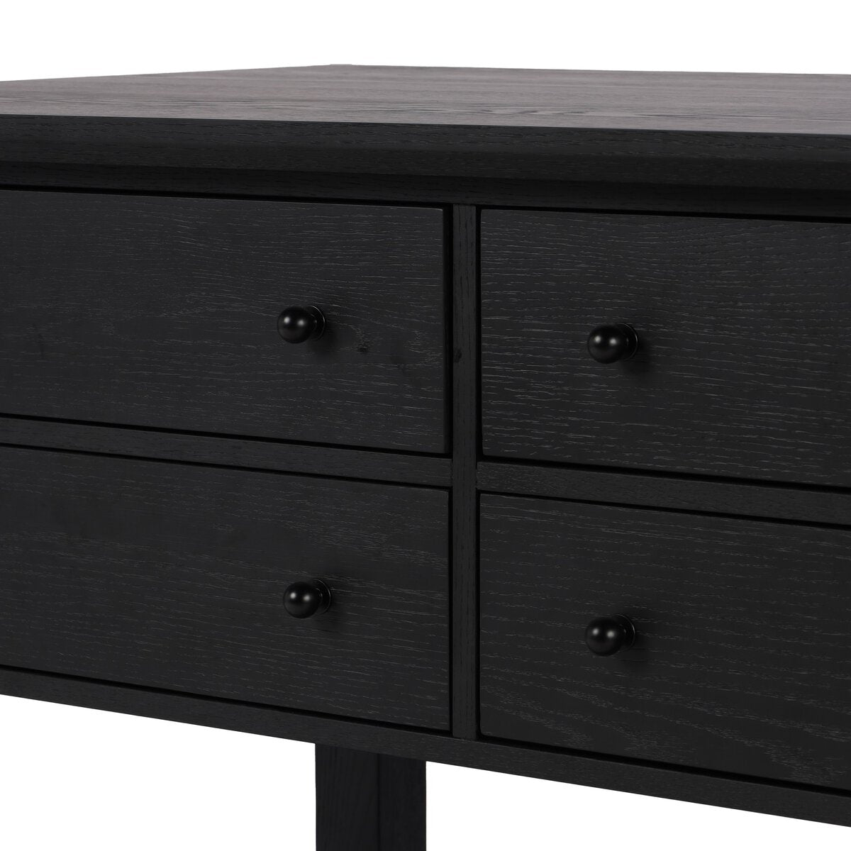 Overall Dimensions 60.00"w x 36.00"d x 36.00"hItem Number 239990-001Colors Tan Oak Veneer, Black IronMaterials Oak Veneer, IronWeight 261.25 lbVolume 33.73 cu ftClearance from Floor 1 4.50"Distance between Legs (Front to Back) 1 28.25"Distance between Legs (Side to Side) 1 51.00"Drawer Depth 1 14.50"Drawer Height 1 4.50"Drawer Width 1 22.00"Fixed Shelf Depth 1 20.25"Fixed Shelf Height 1 0.75"Fixed Shelf Width 1 51.00"Interior Section Depth 1 20.25"Interior Section Height 1 13.75"Interior Section Width 1 51.00"Overhang Width 1 12.75"Door Type No DoorsDrawer Glide Color BlackDrawer Glide Type Sidemount MetalDrawer Joinery Butt JointDrawer Quantity 4.00Drawer Stop Material NoneFixed Shelf Qty 1.00Fixed Shelves YesFrame Construction Joinery Corner-block/CleatFrame Construction Joinery Mortise and TenonFunctionality DrawersInterior Section Quantity 1.00Protective Feet Leg LevelersRecommended Shelf Capacity (kg) 18.14Recommended Shelf Capacity (lbs) 40.00Seating Capacity 2.00Shape Type RectangleSuite GardendaleWeight Capacity 100 lb