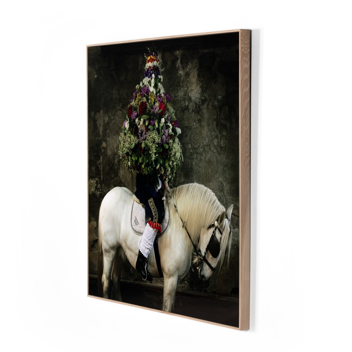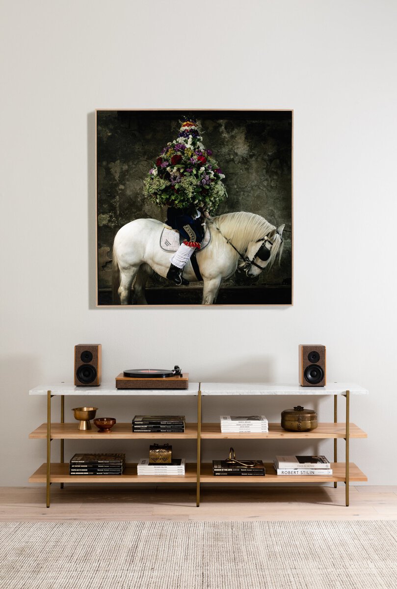 A beautifully ornate capture of "The King" on Castleton Garland Day, a Celtic tradition dating back to the 1700s, by London-based photographer Dan Kitwood. A high-definition metal print produced on ChromaLuxe using dye sublimation print technology and float-mounted in a vertical grain floater frame of white-finished American oak for a modern, museum-quality look. Image courtesy of Getty Images.