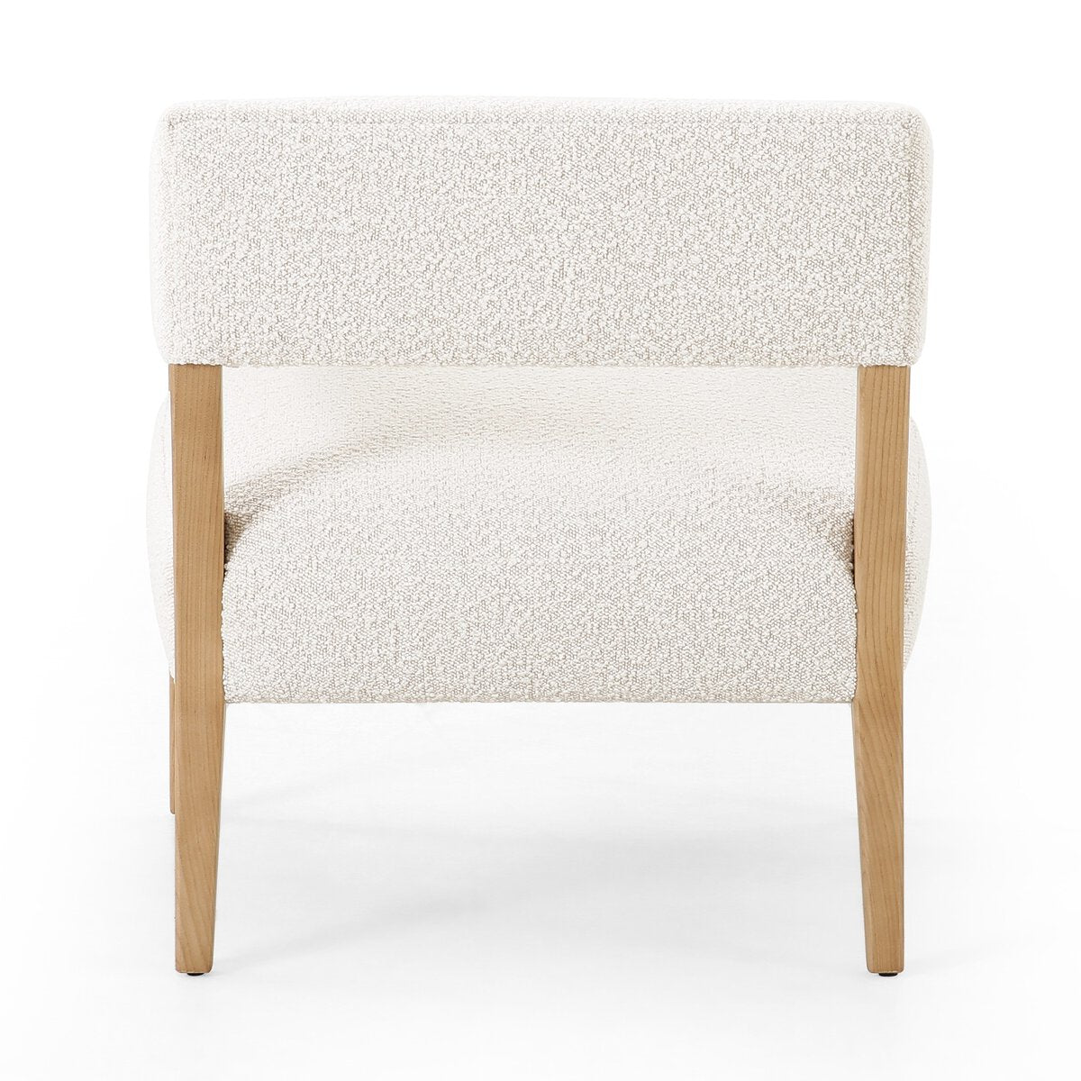 Material and shape share the spotlight. A blonde ash frame pairs seamlessly with off-white boucle, for a look of understated glam, while angular arms nod mid-century inspiration.