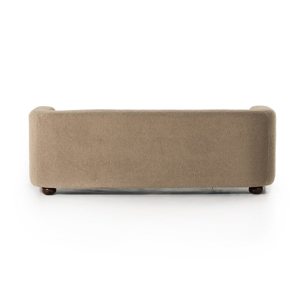 Inspired by vintage flea market finds, a faux shearling-upholstered sofa pairs a simple silhouette with clean, sweeping curves. Bench-seat cushioning plus feather-blend seating for total comfort.