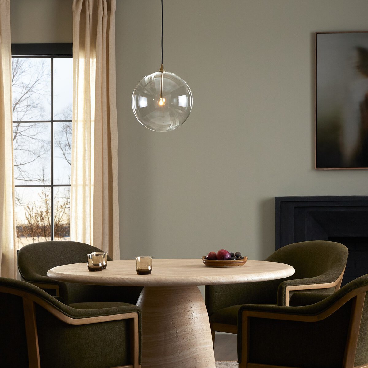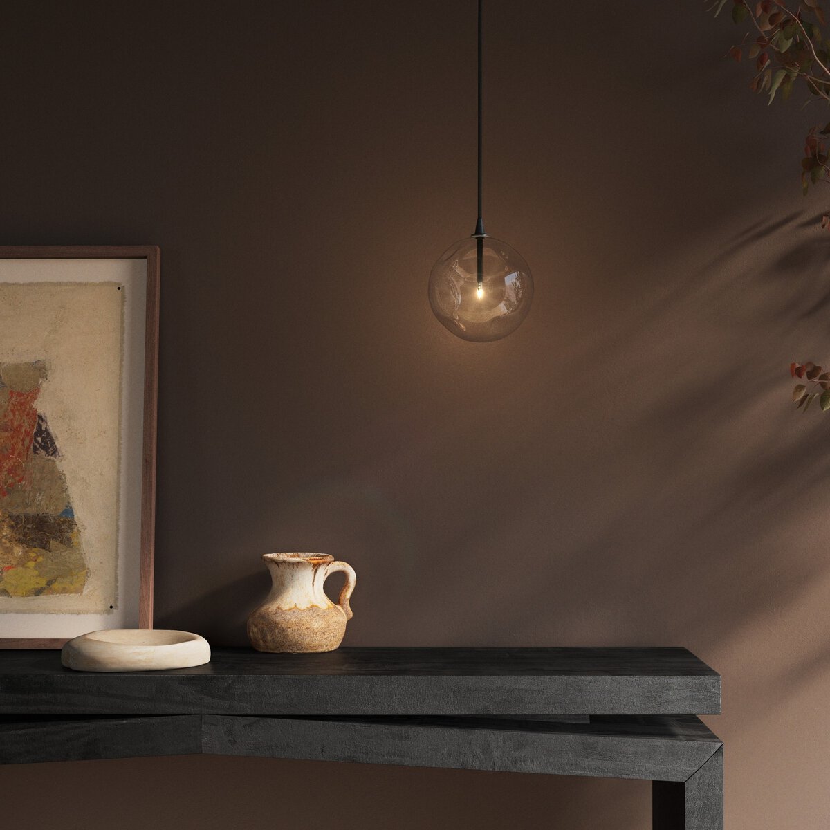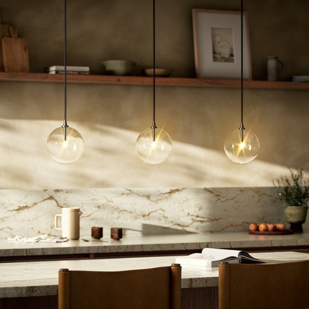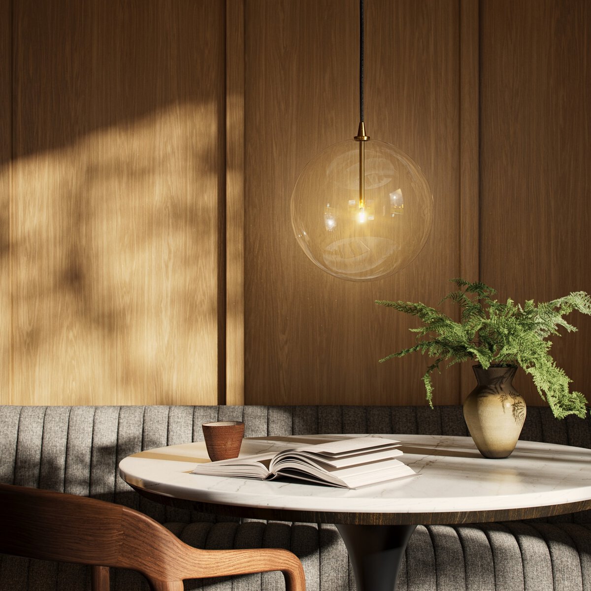 Overall Dimensions 7.75"w x 7.75"d x 15.25"hItem Number 245063-001Colors Clear Glass, Burnished BrassMaterials Glass, BrassWeight 2.80 lbVolume 1.34 cu ftAdjustable Light, Overall Height (Max) 124.25"Adjustable Light, Overall Height (Min) 15.28"Cord Length 124.25"Mounting Plate Diameter 4.72"Mounting Plate Height 2.64"Pendant Body Diameter 7.87"Pendant Body Height 7.87"Adjustable YesBathroom Safe YesBulb Type LEDBulb(s) Included YesCan Hang On Sloped Ceiling YesCord Type OtherDimmer Switch Compatible YesEnvironmental Rating Damp RatedMax Wattage 20.00Pipe Length Qty No pipePlug Type HardwiredShade Shape RoundShape Type RoundSocket Qty 1.00Socket Type E12: SOCKETSocket Type Type GSuite Glass GlobeSwitch Type HARDWIRED (NO SWITCH)Visible Bulb Yes