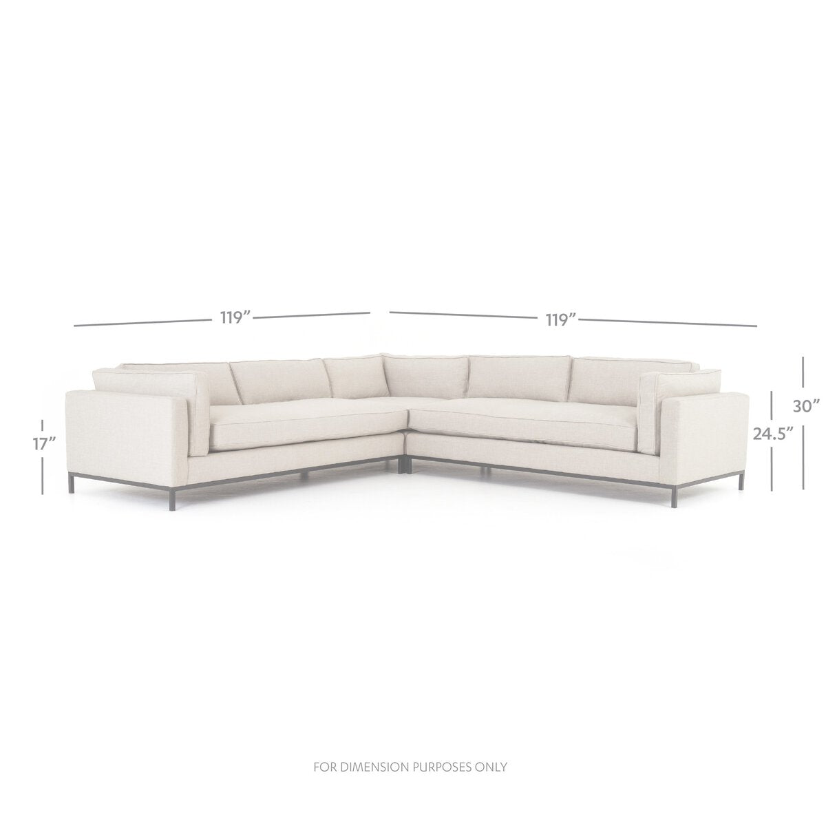 W (Water-based)Dust Panel YesFilling in Back Cushion 50% Waterfowl Feather, 50% Polyester FiberFilling in Body 100% Polyurethane FoamFilling in Seat 63% Polyurethane Foam Pad, 30% Polyester Fiber, 7% Waterfowl FeatherFrame Construction Joinery Corner-block/CleatFunctionality NoneReversible YesRub Rate 100000.00Seat Construction S-SpringSeat Cushion Attachment LooseSeat Cushion Detail BoxedSeat Cushion Detail Removable CasingSeating Capacity 5.00Sectional Clip U-ClipSectional Configurations L-ShapedShape Type Corner 3 PieceSuite GrammercyUpholstery Finishing Detail Reversible CushionsWeight Capacity 875 lb