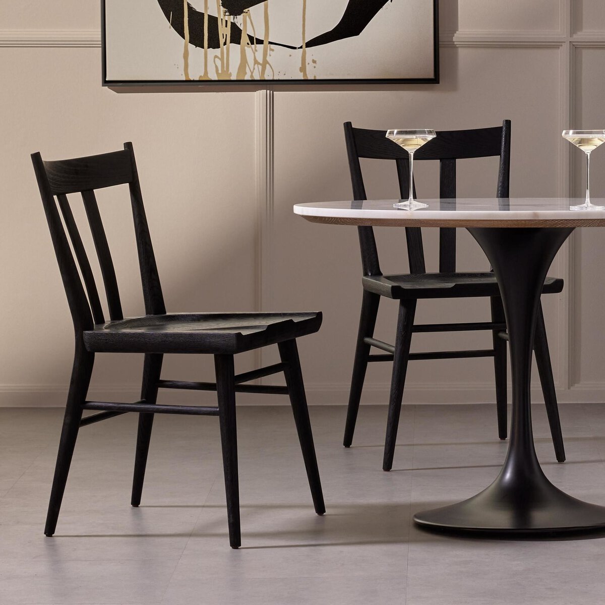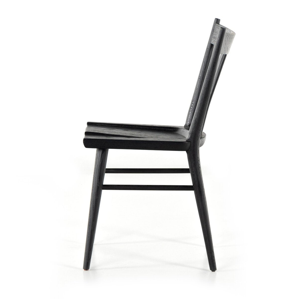 Overall Dimensions 19.75"w x 21.75"d x 35.00"hItem Number 108800-001Colors Black OakMaterials Solid OakWeight 15.43 lbVolume 9.36 cu ftClearance from Floor 1 9.65"Distance between Legs (Front to Back) 1 17.87"Distance between Legs (Side to Side) 1 17.44"Seat Back Height 3.15"Seat Depth 1 17.76"Seat Height 1 19.09"Seat Width (Back) 15.55"Seat Width (Front) 18.66"Chair Arm Option ArmlessDining Chair Type SideFrame Construction Joinery Corner-block/CleatFrame Construction Joinery Mortise and TenonFunctionality NoneSeat Construction Wooden PlatformSeating Capacity 1.00Suite GregoryWeight Capacity 250 lb