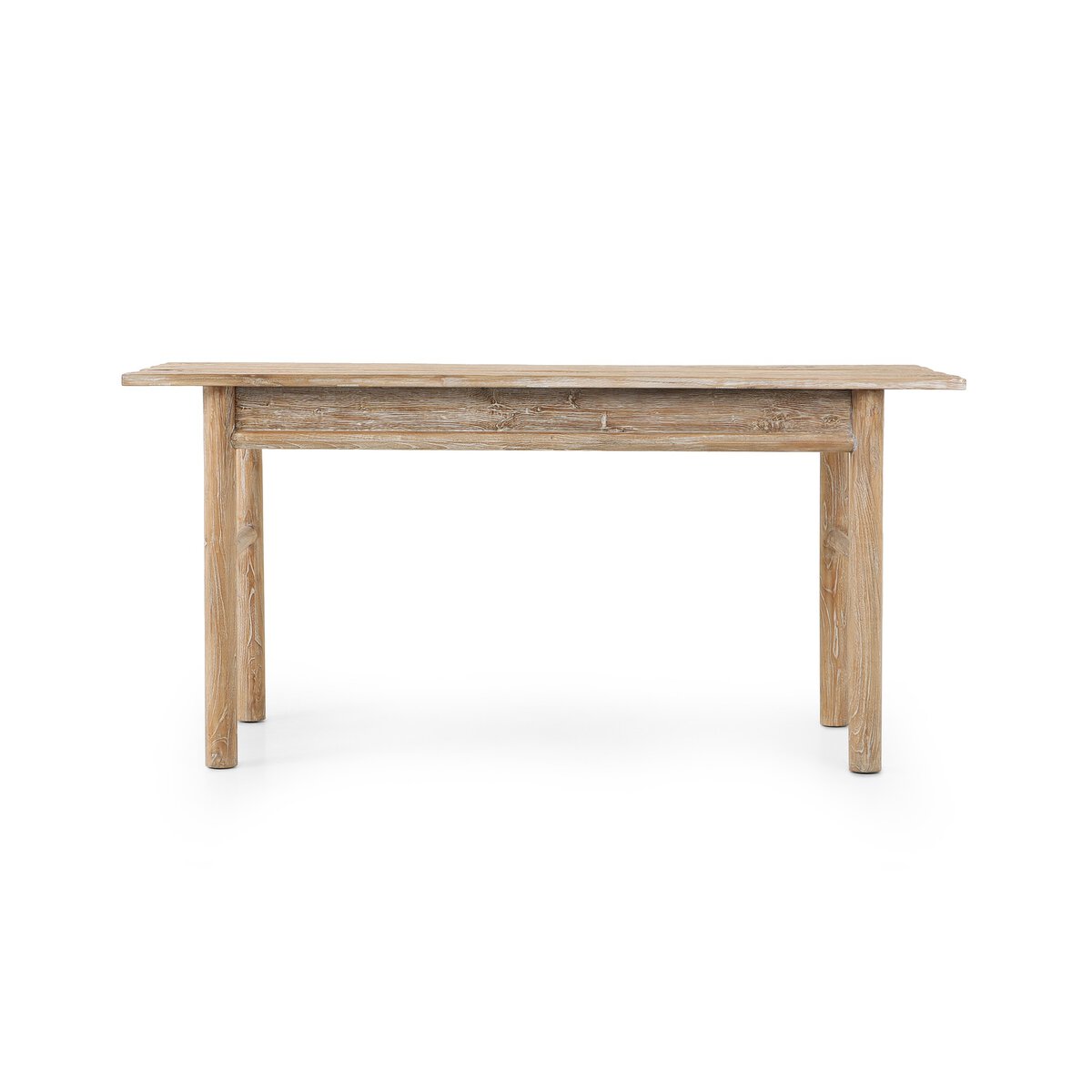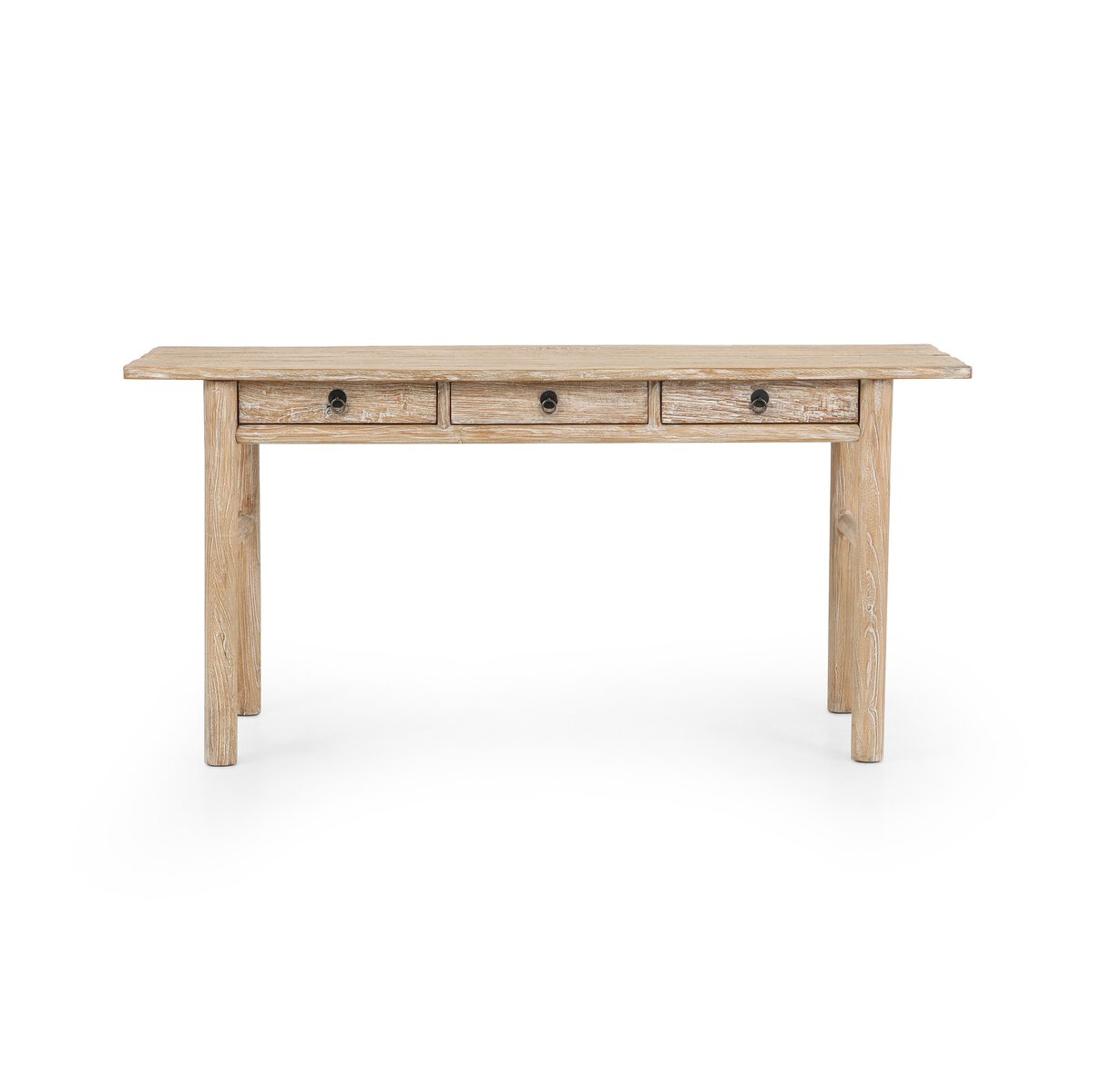 Overall Dimensions 65.00"w x 26.00"d x 31.00"hItem Number 239542-001Colors WhitewashMaterials Solid Reclaimed ElmWeight 88.18 lbVolume 16.00 cu ftClearance from Floor 1 15.51"Distance between Legs (Front to Back) 1 18.98"Distance between Legs (Side to Side) 1 47.99"Drawer Depth 1 14.76"Drawer Depth 2 14.76"Drawer Height 1 2.44"Drawer Height 2 2.44"Drawer Width 1 13.19"Drawer Width 2 14.25"Opening for Seating Height 25.00"Tabletop Thickness 0.98"Can Be Floated YesDoor Type No DoorsDrawer Glide Color WoodDrawer Glide Type Sidemount WoodDrawer Joinery English DovetailDrawer Quantity 3.00Drawer Stop Anti Tip Rail YesDrawer Stop Material MetalFrame Construction Joinery Butt JointFrame Construction Joinery Mortise and TenonFrame Construction Joinery NailsFunctionality DrawersHas Leveler YesProtective Feet Leg LevelersShape Type WritingSuite GriffithWeight Capacity 100 lb