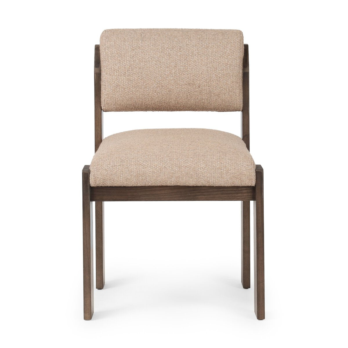 Overall Dimensions 21.50"w x 24.00"d x 33.50"hItem Number 240361-004Colors Heron Sand, Warm AshMaterials 34% Acrylic, 24% Cotton, 14% Wool, 12% Viscose (Rayon), 12% Polyester, 4% Flax/Linen, Solid AshWeight 24.91 lbVolume 10.49 cu ftClearance from Floor 1 14.25"Distance between Legs (Front to Back) 1 14.75"Distance between Legs (Side to Side) 1 19.75"Seat Back Height 13.00"Seat Depth 1 18.00"Seat Height 1 20.50"Seat Width (Back) 18.50"Seat Width (Front) 19.50"Back Cushion Attachment FixedBack Cushion Detail Knife EdgeBack Cushion Qty 1.00Chair Arm Option ArmlessCleaning Code