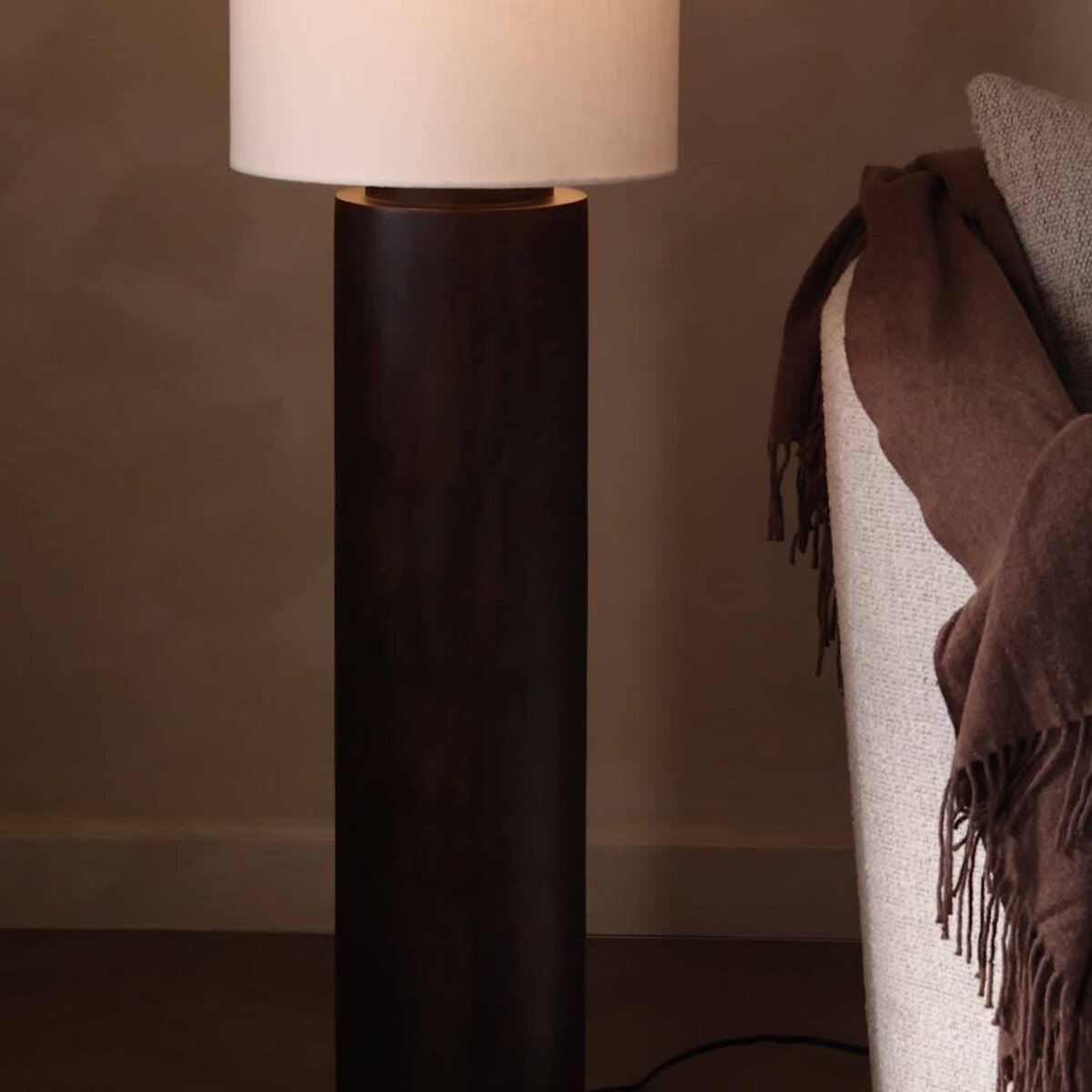 Overall Dimensions 14.00"w x 14.00"d x 64.00"hItem Number 237705-003Colors Light Smoked Oak Veneer, Jet BlackMaterials Oak Veneer, IronWeight 22.27 lbVolume 10.81 cu ftCord Length 86.00"Finial Size 1.00"Lamp Base Depth 8.00"Lamp Base Height 32.50"Lamp Base Width 8.00"Lamp Body Depth 8.00"Lamp Body Height 64.00"Lamp Body Width 8.00"Neck Diameter 0.63"Neck Height 8.00"Shade Bottom Diameter 14.00"Shade Height 1 30.50"Shade Top Diameter 1 14.00"Bulb Type LEDCord Type SPT-2Max Wattage 22.00Plug Type  PolarizedPlug Type 2-ProngedShade Shape DrumSocket Qty 1.00Socket Type  E26: 3WAYSocket Type TYPE ASuite HaneySwitch Location SocketSwitch Type 3WAY ROTARY