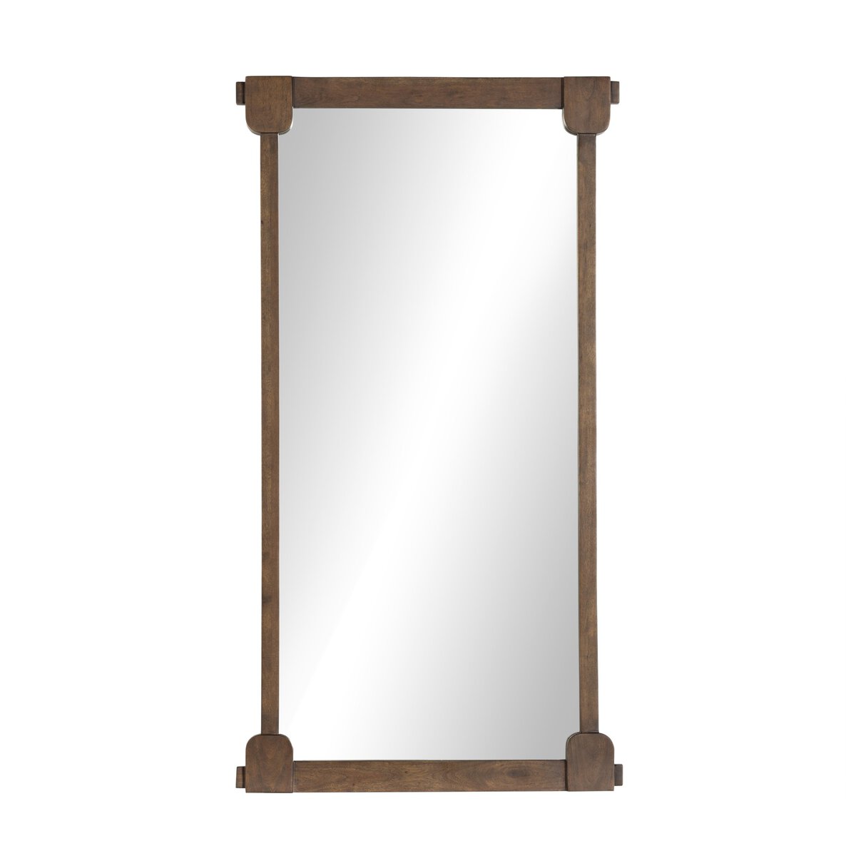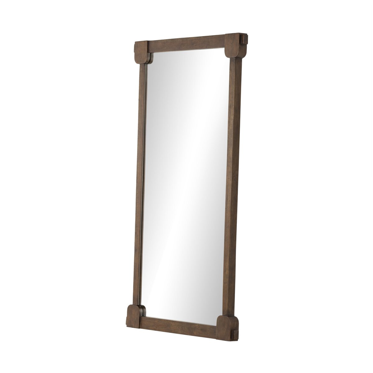 Overall Dimensions 40.00"w x 3.00"d x 74.00"hItem Number 232009-001Colors Tanner Brown AcaciaMaterials Solid Acacia, MirrorWeight 88.18 lbVolume 11.87 cu ftReflective Area, Height 67.25"Reflective Area, Width 31.00"Anti-Tip Kit Included? YesBathroom Safe NoHanging Direction  cannot be hungHanging Direction Floor onlyShape Type RectangleSuite Harda