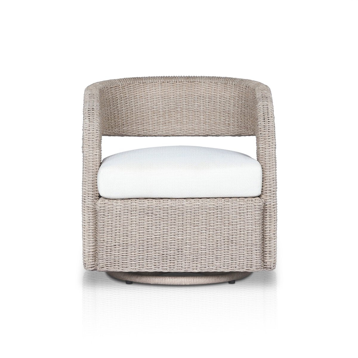 Overall Dimensions 27.00"w x 27.00"d x 29.25"hItem Number 237630-006Colors Faye Cream, Vintage WhiteMaterials 100% Olefin, 100% PolyethyleneWeight 35.87 lbVolume 16.56 cu ftArm Height from Floor 24.02"Arm Height from Seat 5.83"Arm Length 22.05"Arm Width 2.25"Clearance from Floor 1 0.39"Seat Back Height 13.46"Seat Cushion Depth 1 22.05"Seat Cushion Thickness 1 4.00"Seat Cushion Width 1 22.47"Seat Depth 1 22.05"Seat Height 1 18.19"Seat Width 1 22.47"Cleaning Code