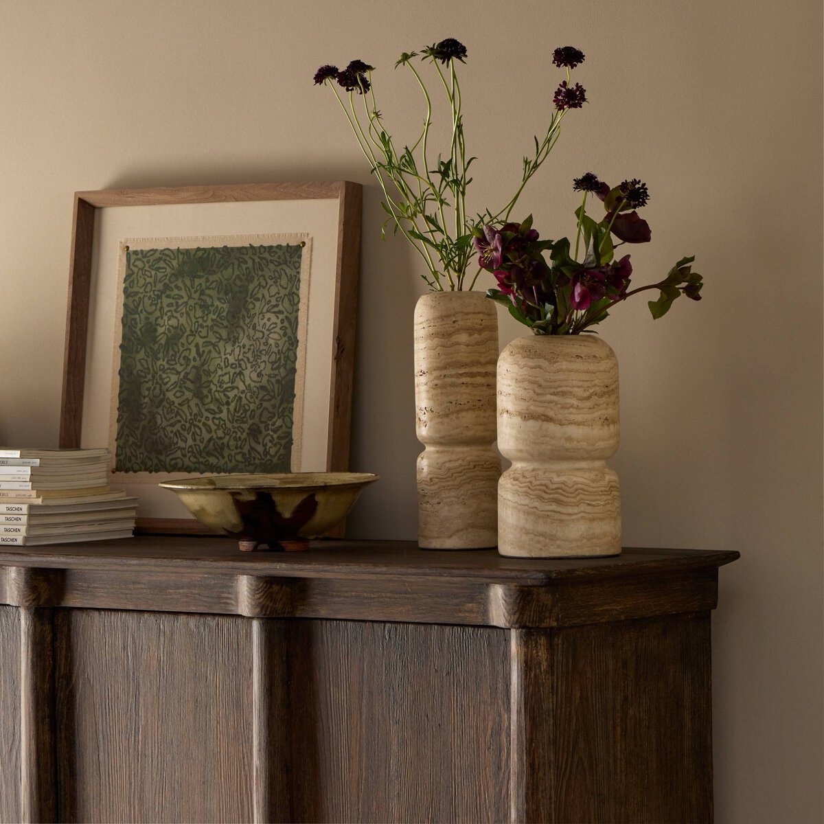 Overall Dimensions 9.75"w x 5.75"d x 12.50"hItem Number 250579-001Colors Light TravertineMaterials Solid Travertine, GlassWeight 29.54 lbVolume 1.80 cu ftObject 1 Depth 4.00"Object 1 Height 12.50"Object 1 Width 4.00"Object 2 Depth 5.63"Object 2 Height 10.25"Object 2 Width 5.63"Object 3 Depth 1.50"Object 3 Height 5.00"Object 3 Width 1.50"Object 4 Depth 1.88"Object 4 Height 7.25"Object 4 Width 1.88"Num Of Pieces 2.00Suite HaylenWatertight Yes