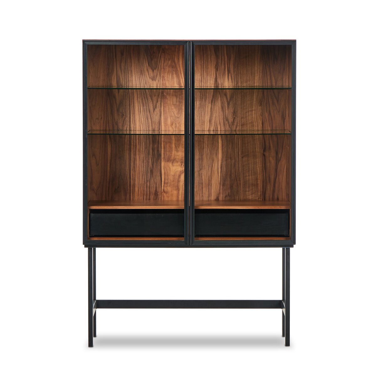 Overall Dimensions 47.25"w x 19.00"d x 69.00"hItem Number 234239-001Colors Natural Walnut, Black Iron, Black AluminumMaterials Walnut Veneer, Iron, AluminumWeight 165.35 lbVolume 60.11 cu ftClearance from Floor 1 23.25"Drawer Depth 1 13.25"Drawer Height 1 3.75"Drawer Width 1 20.25"Interior Section Depth 1 17.00"Interior Section Height 1 36.10"Interior Section Width 1 45.75"Removable Shelf (Fixed or Adjustable) Depth 1 15.75"Removable Shelf (Fixed or Adjustable) Height 1 0.25"Removable Shelf (Fixed or Adjustable) Width 1 45.75"Cabinet Storage Type DisplayDoor Qty 2.00Door Type HingedDrawer Glide Color SilverDrawer Glide Type Undermount MetalDrawer Joinery English DovetailDrawer Quantity 2.00Drawer Stop Material NoneFrame Construction Joinery Bore and DowelFrame Construction Joinery Edge Banded VeneerFunctionality DoorsFunctionality ShelvesHas Soft Close Drawers YesHinge Type Cabinetry-soft closeInterior Section Quantity 1.00Protective Feet Leg LevelersRecommended Shelf Capacity (kg) 11.34Recommended Shelf Capacity (lbs) 25.00Removable Shelf YesRemovable Shelf Qty 2.00Shape Type SingleSuite Hayward