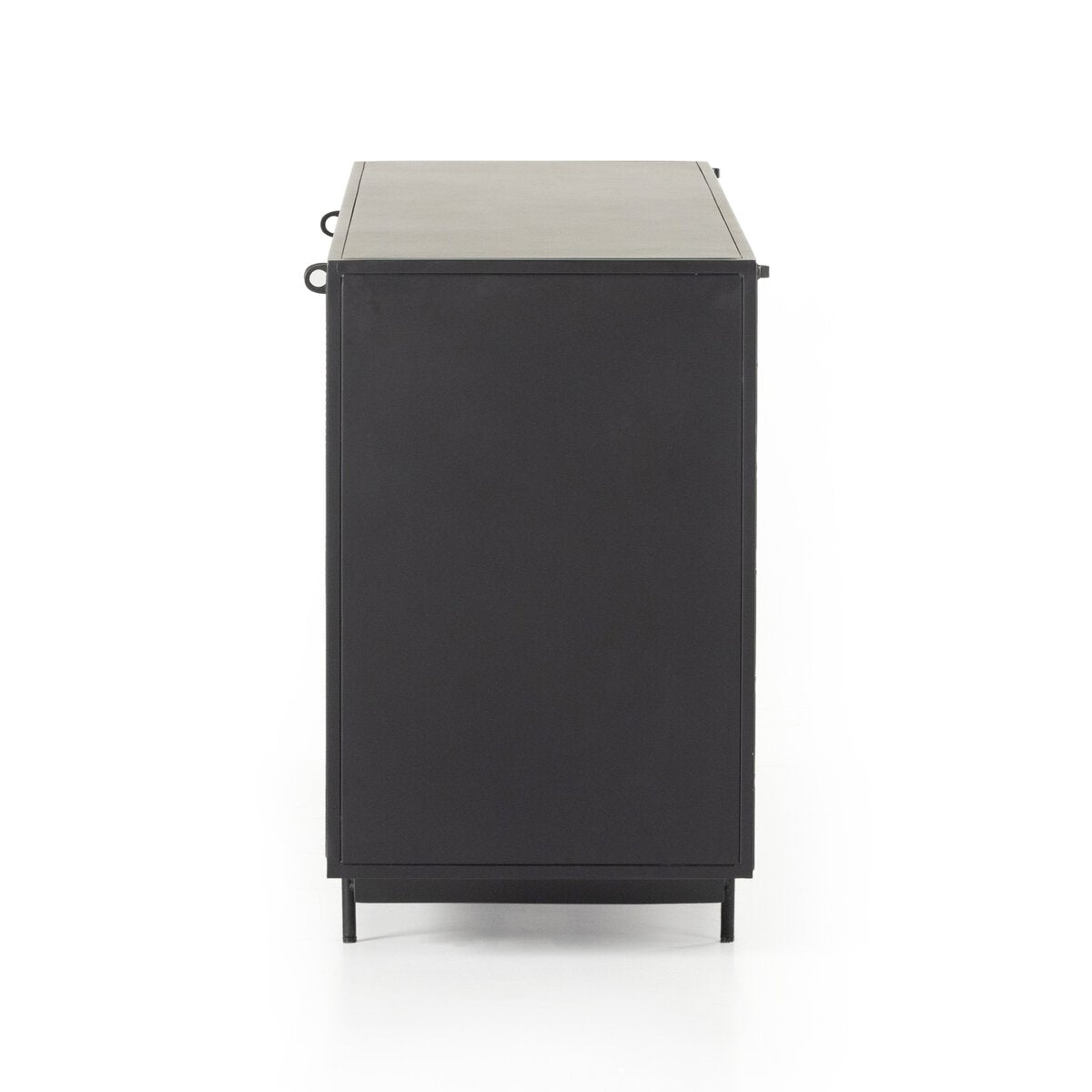 Overall Dimensions 73.00"w x 18.00"d x 30.00"hItem Number IRCK-207Colors Gunmetal, Perforated Brass PatinaMaterials IronWeight 163.58 lbVolume 35.92 cu ftClearance from Floor 1 4.00"Distance between Pin Placements 6.00"Door Height 1 24.75"Door Thickness 1 0.75"Door Width 1 17.75"Interior Section Depth 1 15.25"Interior Section Height 1 12.00"Interior Section Width 1 35.50"Removable Shelf (Fixed or Adjustable) Depth 1 15.25"Removable Shelf (Fixed or Adjustable) Height 1 0.50"Removable Shelf (Fixed or Adjustable) Width 1 35.50"Door Closure Catch Type MagneticDoor Qty 4.00Door Type HingedDrawer Glide Type NoneDrawer Stop Material NoneFunctionality DoorsFunctionality ShelvesHas Leveler YesHinge Type Door Scissor (Pivot Hinge)Interior Section Quantity 2.00Protective Feet Leg LevelersRecommended Shelf Capacity (kg) 18.14Recommended Shelf Capacity (lbs) 40.00Removable Shelf YesRemovable Shelf Adjustable? YesRemovable Shelf Qty 2.00Suite HendrickWeight Capacity 200 lb