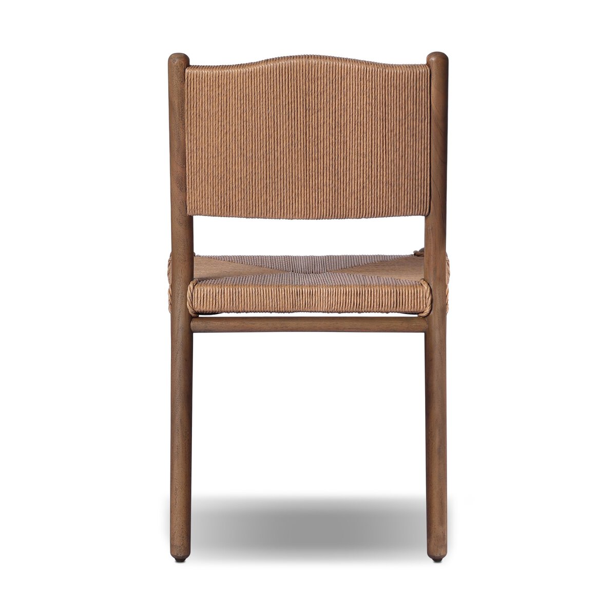 Shaker inspiration. Saddle brown wood frames the woven seat and back of this outdoor dining chair. Cover or store indoors during inclement weather and when not in use.