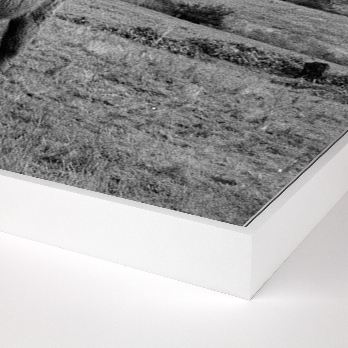 Overall Dimensions 24.00"w x 1.50"d x 24.00"hItem Number 244726-002Colors White 1.5 Maple, Clear Acrylic GlazingMaterials American Maple, Acrylic GlazingWeight 15.00 lbVolume 1.34 cu ftArtist Wesley and Emma TeagueMain Color Black & WhiteOrientation SquarePresentation Style Framed PaperSize SmallSubject AnimalSuite Escape