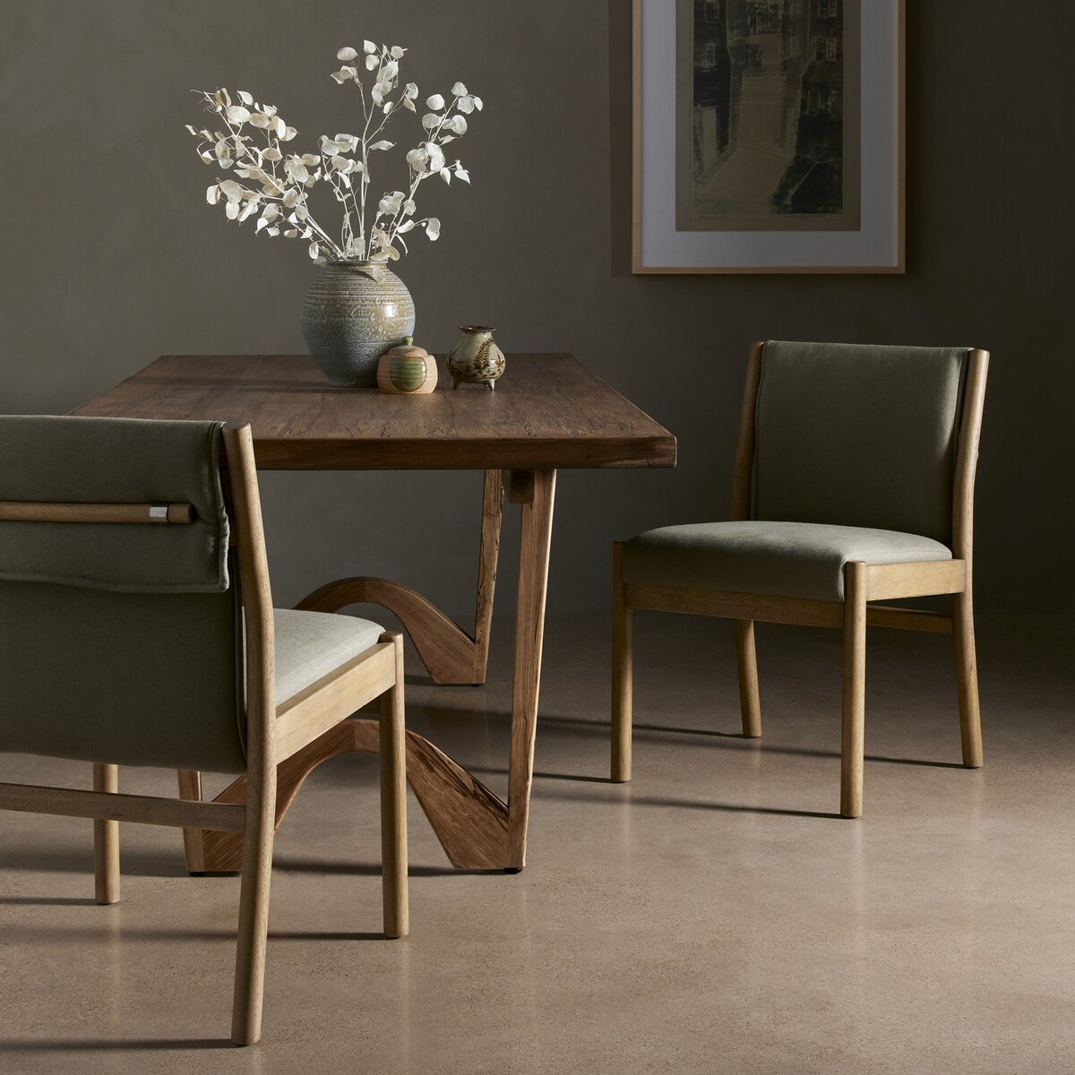 Overall Dimensions 21.25"w x 24.50"d x 33.50"hItem Number 226218-004Colors Gibson Taupe, Heirloom Greywash, Brushed SilverMaterials 97% Polyester, 3% Acrylic, Solid Parawood, Stainless SteelFabric PerformanceWeight 18.74 lbVolume 9.15 cu ftClearance from Floor 1 13.58"Distance between Legs (Front to Back) 1 19.49"Distance between Legs (Side to Side) 1 18.11"Seat Back Height 15.16"Seat Depth 1 20.08"Seat Height 1 19.88"Seat Width 1 18.90"Chair Arm Option ArmlessCleaning Code