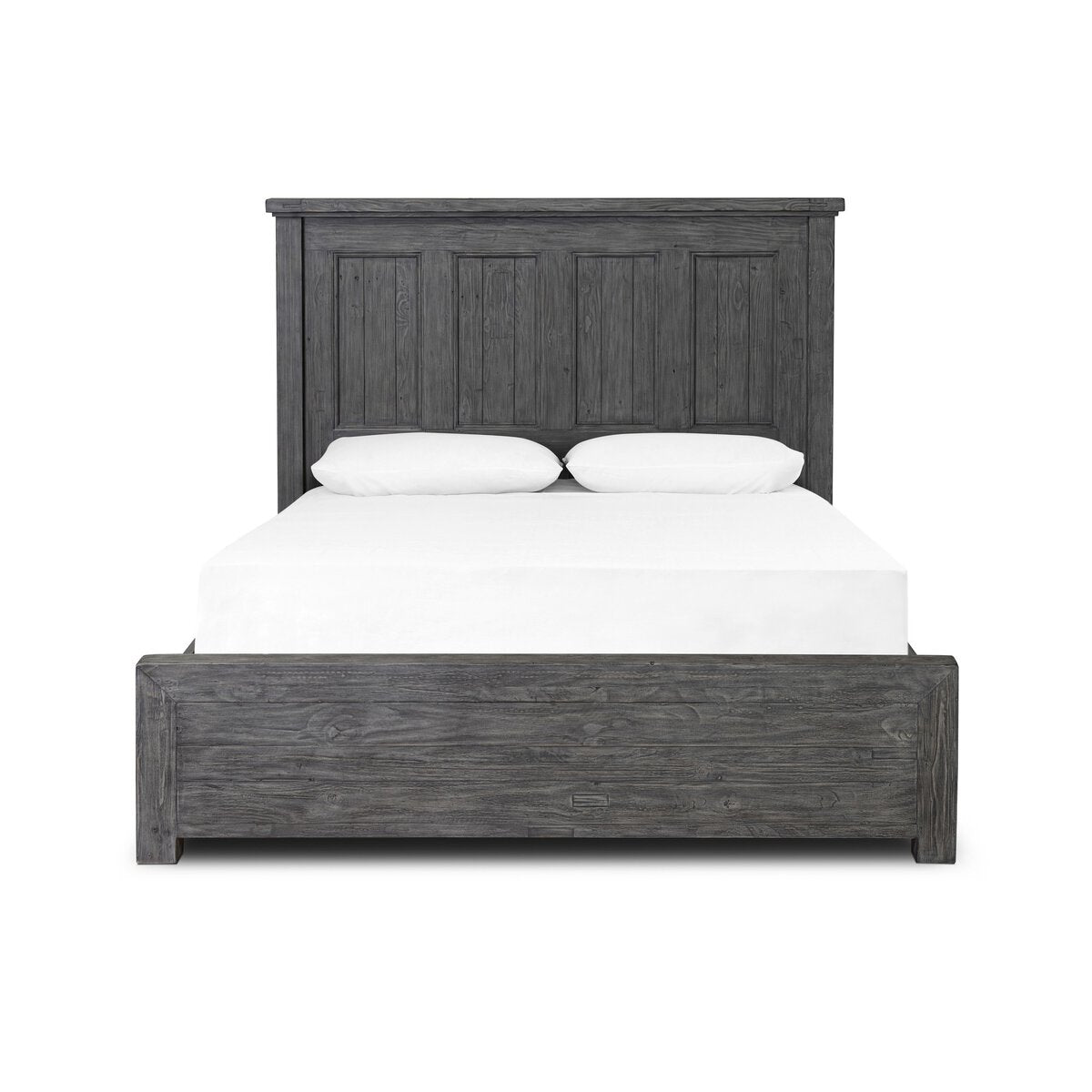 Overall Dimensions 82.50"w x 87.75"d x 50.75"hItem Number 245238-002Colors Washed GreyMaterials Solid Mixed Reclaimed WoodWeight 131.17 lbVolume 32.81 cu ftClearance from Footboard 1.97"Clearance from Headboard 11.22"Clearance from Side Rails 5.71"Floor to Top of Slat Height 10.35"Footboard Height 15.94"Footboard Thickness 3.15"Footboard Width 80.51"Headboard Height 50.79"Headboard Thickness 4.72"Headboard Width 82.48"Interior Dimension for Mattress Depth 80.71"Interior Dimension for Mattress Height 1.65"Interior Dimension for Mattress Width 78.15"Interior Frame Depth (Without Slats and Center Rail) 80.71"Interior Frame Width (Without Slats and Center Rail) 78.15"Side Rails Height 6.30"Side Rails Length 80.71"Side Rails Thickness 0.98"Adjustable Bed Frame Compatible YesBed Backing Sealant/Stain (Can’t be floated)Box Spring Required Standard Box SpringDrawer Glide Type NoneDrawer Stop Material NoneFrame Construction Joinery Frame and Panel ConstructionSize KingSuite Irish CoastWeight Capacity 550 lb