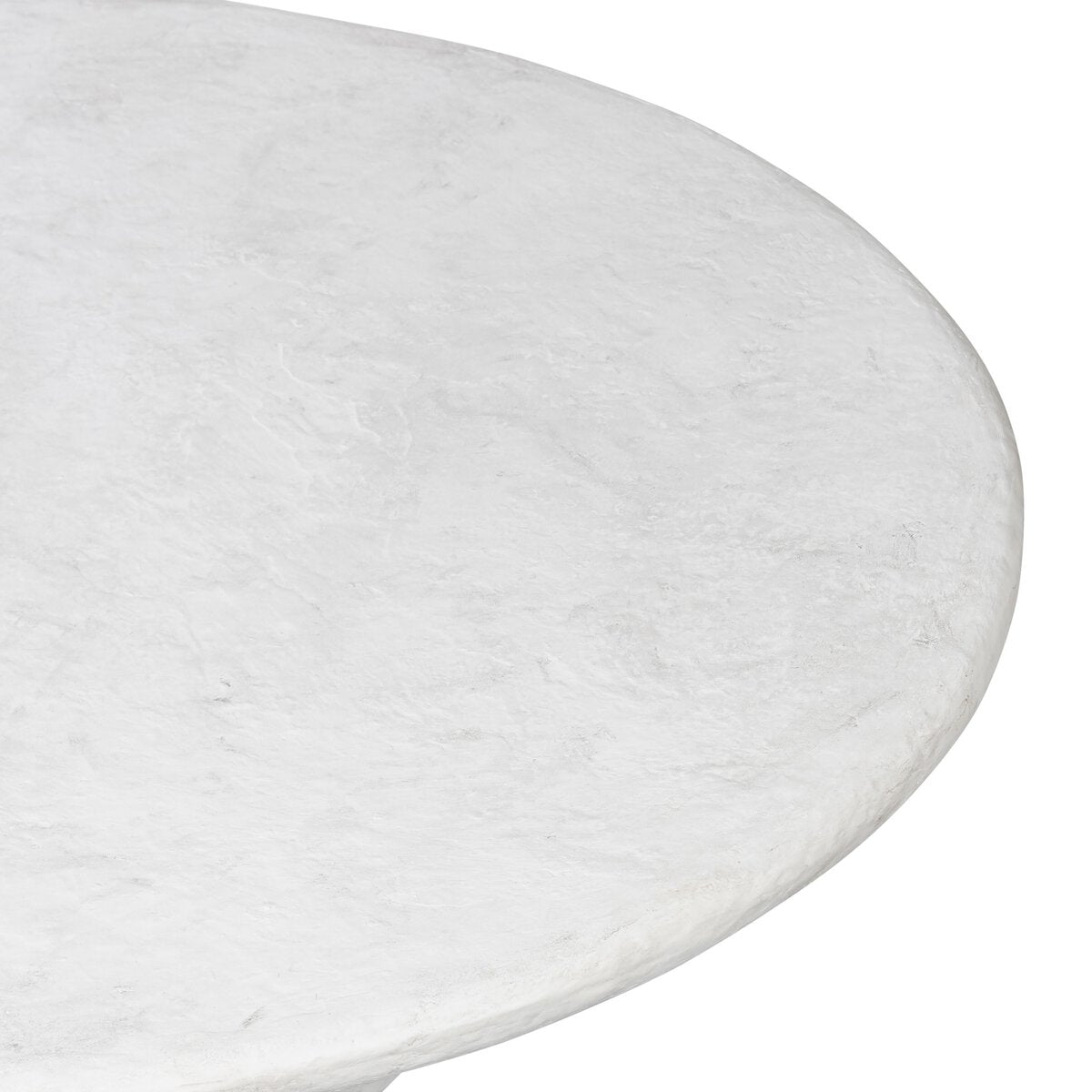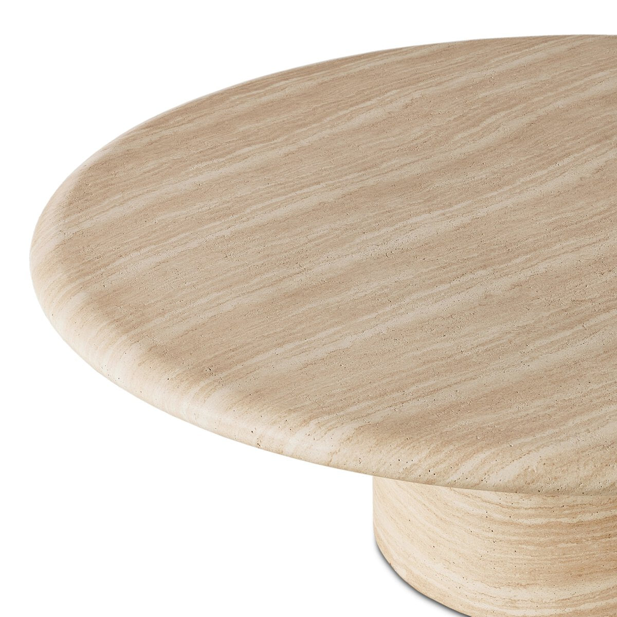 A beautiful dome-shaped pedestal base supports a rounded tabletop with bullnose edges. Made from textured concrete with a water-transfer finish which resemble natural stone. Style indoors or out. Cover or store inside during inclement weather and when not in use.