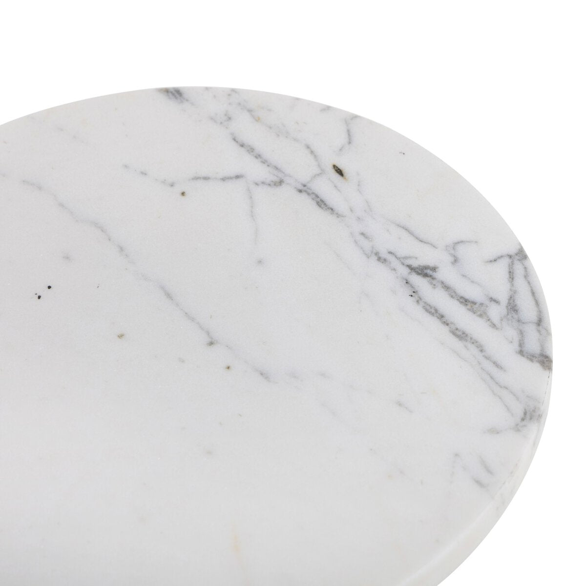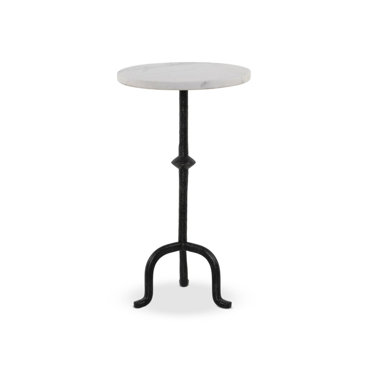 Overall Dimensions 12.00"w x 12.00"d x 21.00"hItem Number 243978-006Colors Veined White Marble, Raw Black IronMaterials Solid Marble, IronWeight 15.52 lbVolume 1.94 cu ftClearance from Floor 1 4.75"Distance between Legs (Front to Back) 1 6.50"Distance between Legs (Side to Side) 1 6.50"Leg/Base Depth 1 8.00"Leg/Base Height 1 20.75"Leg/Base Width 1 8.00"Overhang Width 1 2.00"Tabletop Thickness 0.25"Drawer Glide Type NoneDrawer Stop Material NoneFunctionality NoneShape Type RoundSuite JocelynWeight Capacity 100 lb