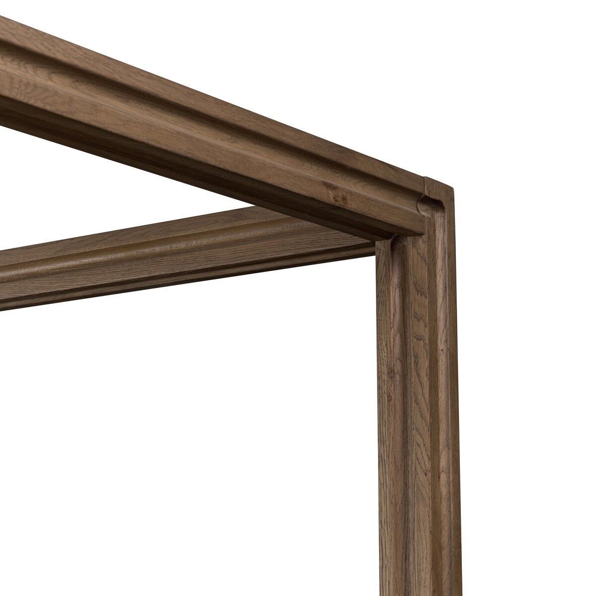 Overall Dimensions 80.50"w x 86.75"d x 82.75"hItem Number 251467-001Colors Malmo Olive, Amber OakMaterials 50% Recycled Polyester, 50% Polyester, Solid OakWeight 243.61 lbVolume 32.31 cu ftClearance from Footboard 2.99"Clearance from Headboard 2.99"Clearance from Side Rails 2.99"Distance between Slats 5.91"Floor to Top of Slat Height 9.09"Footboard Height 82.68"Footboard Thickness 2.36"Footboard Width 80.55"Headboard Height 82.68"Headboard Thickness 5.00"Headboard Width 80.55"Interior Dimension for Mattress Depth 80.51"Interior Dimension for Mattress Height 2.17"Interior Dimension for Mattress Width 77.01"Interior Frame Depth (Without Slats and Center Rail) 79.02"Interior Frame Width (Without Slats and Center Rail) 74.02"Side Rails Height 8.46"Side Rails Length 82.09"Side Rails Thickness 2.36"Adjustable Bed Frame Compatible YesBed Backing Dark FabricBed Material WoodBox Spring Required Not RequiredCleaning Code