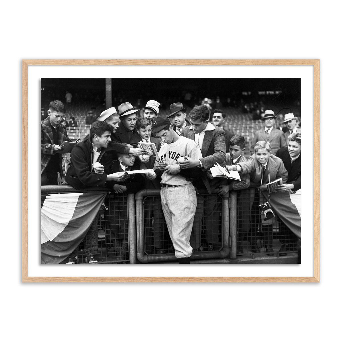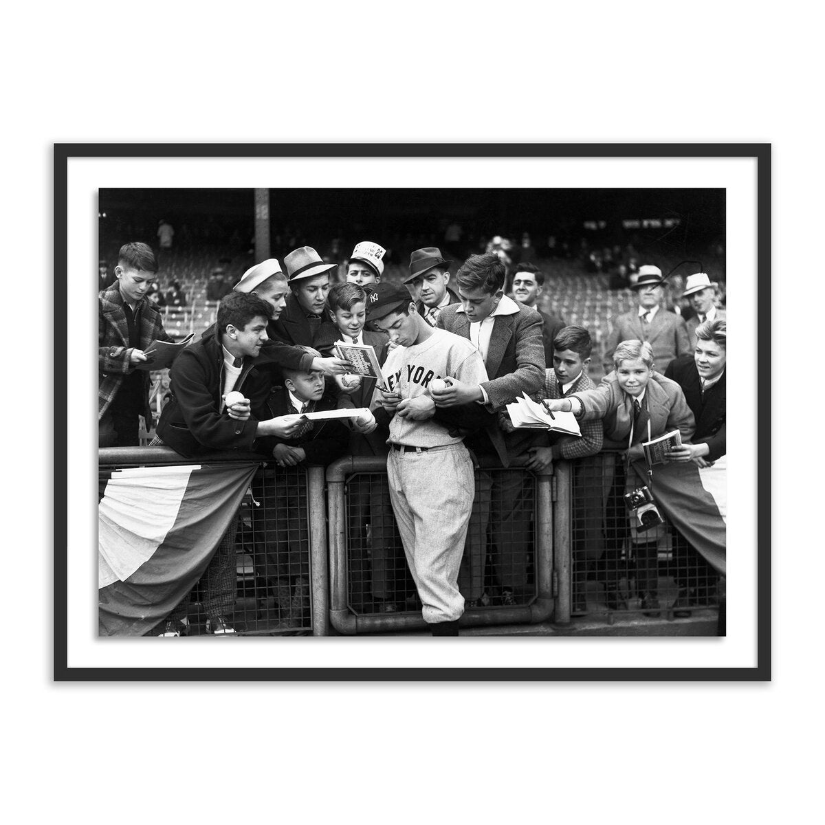 Overall Dimensions 24.00"w x 1.50"d x 18.00"hItem Number 245165-003Colors White 1.5 Maple, Clear Acrylic GlazingMaterials American Maple, Acrylic GlazingWeight 15.00 lbVolume 1.34 cu ftArtist Getty ImagesMain Color Black & WhiteOrientation HorizontalPresentation Style Framed PaperSize SmallSubject CelebritySuite Joe DiMaggio