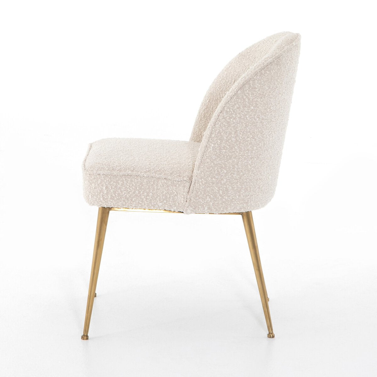 Overall Dimensions 20.00"w x 23.00"d x 31.75"hItem Number CASH-20405-493Colors Knoll Natural, Satin BrassMaterials 95% Polyester, 5% Acrylic, Stainless SteelFabric PerformanceWeight 22.27 lbVolume 8.26 cu ftClearance from Floor 1 13.98"Distance between Legs (Front to Back) 1 19.25"Distance between Legs (Side to Side) 1 17.01"Seat Back Height 12.05"Seat Depth 1 16.93"Seat Height 1 19.76"Seat Width (Back) 17.99"Seat Width (Front) 18.31"Chair Arm Option ArmlessCleaning Code