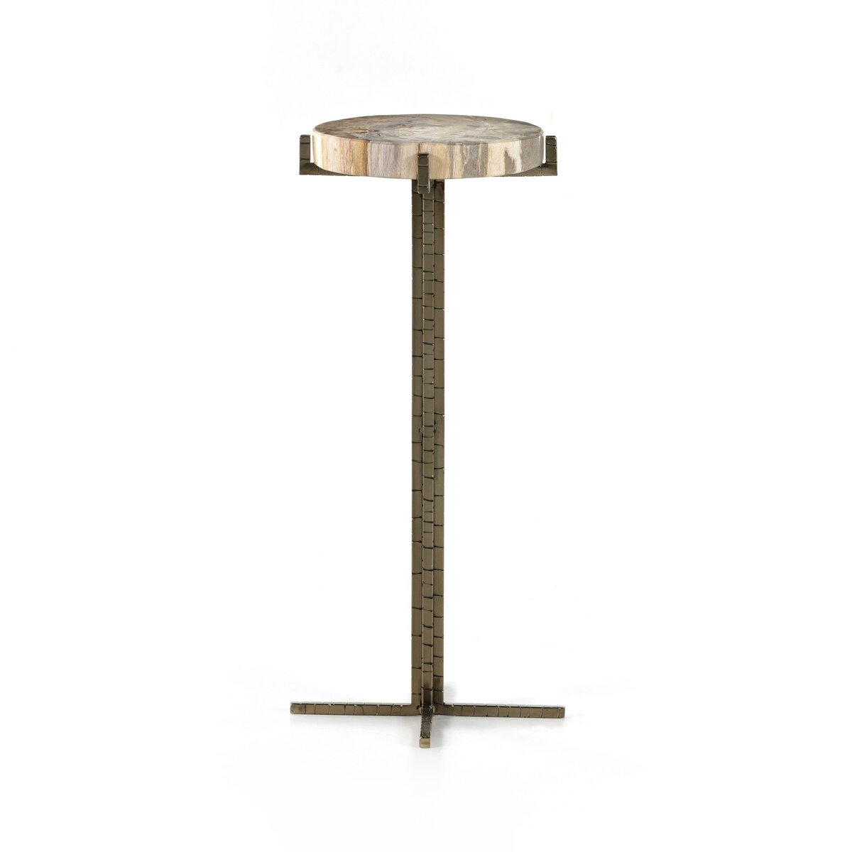 Overall Dimensions 9.75"w x 9.75"d x 20.75"hItem Number 227722-002Colors Light Petrified Wood, Textured BrassMaterials Petrified Wood, Stainless SteelWeight 7.72 lbVolume 1.91 cu ftClearance from Floor 1 19.29"Leg/Base Depth 1 9.84"Leg/Base Height 1 0.39"Leg/Base Width 1 9.84"Overhang Width 1 3.15"Tabletop Thickness 1.18"Drawer Glide Type NoneDrawer Stop Material NoneFunctionality NoneShape Type RoundSuite JontyWeight Capacity 100 lb