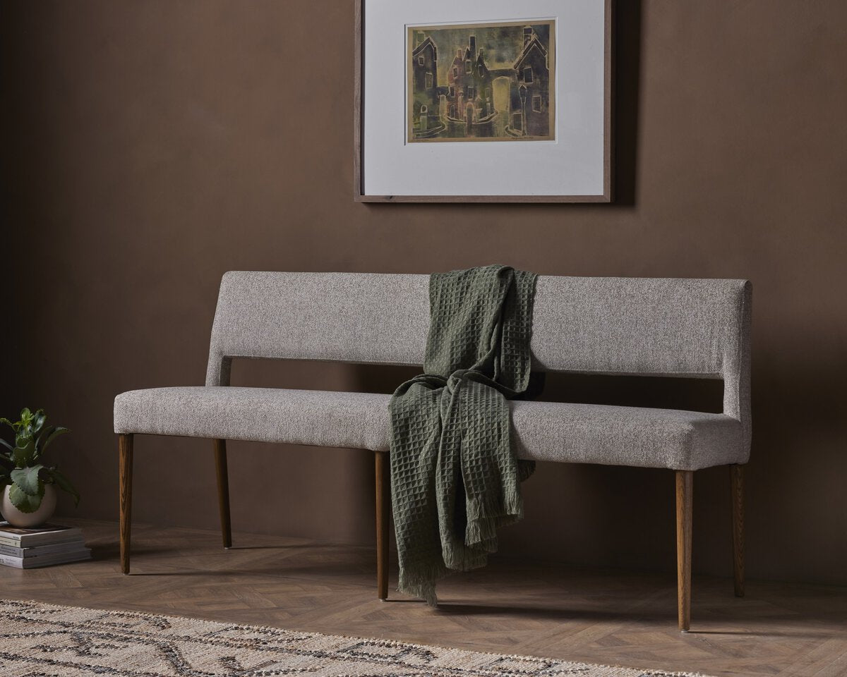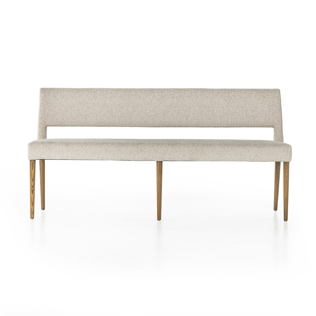 Overall Dimensions 65.00"w x 22.75"d x 32.00"hItem Number 225999-003Colors Light Camel, Toasted OakMaterials 100% Polyester, Solid OakWeight 38.34 lbVolume 31.04 cu ftClearance from Floor 1 15.35"Distance between Legs (Front to Back) 1 18.70"Distance between Legs (Side to Side) 1 30.51"Seat Back Height 12.56"Seat Depth 1 17.72"Seat Height 1 19.49"Seat Width (Back) 63.78"Seat Width (Front) 64.96"Chair Arm Option ArmlessCleaning Code