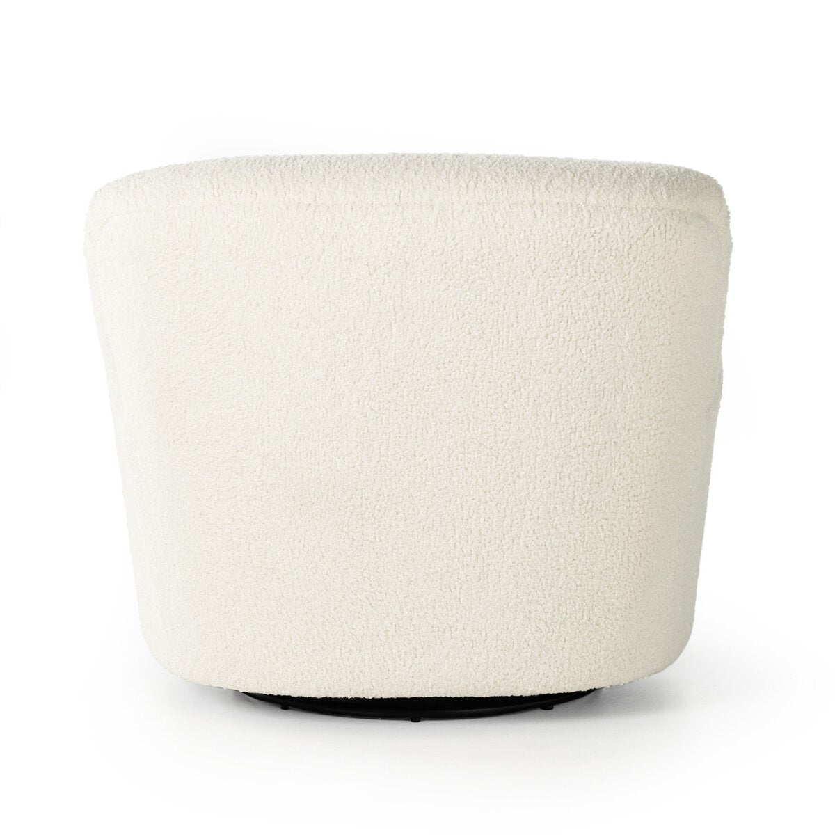 Simply classic. A high wing back pairs with softly rolled arms for a curvy look and supportive sit. Cream-colored shearling-upholstered seating tops a 360-degree swivel.