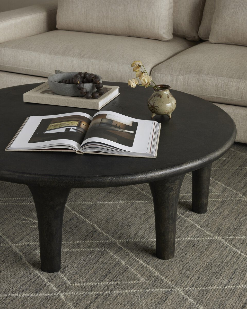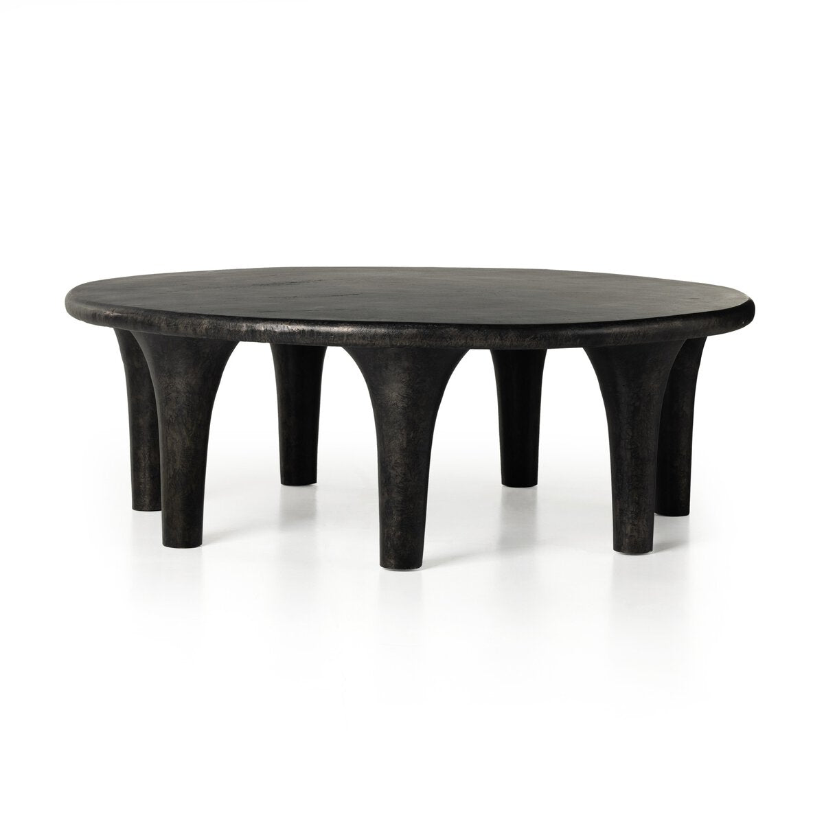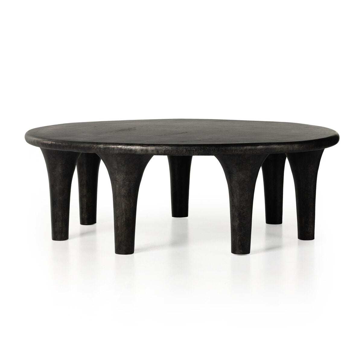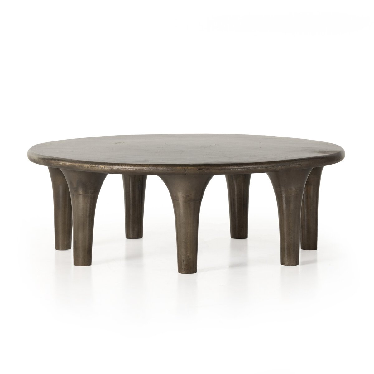 Overall Dimensions 48.00"w x 48.00"d x 16.25"hItem Number 233025-001Colors Aged BronzeMaterials AluminumWeight 131.26 lbVolume 32.81 cu ftClearance from Floor 1 15.00"Distance between Legs (Front to Back) 1 35.00"Distance between Legs (Side to Side) 1 14.00"Leg/Base Depth 1 2.75"Leg/Base Height 1 15.00"Leg/Base Width 1 2.75"Overhang Width 1 3.75"Tabletop Thickness 1.25"Drawer Glide Type NoneDrawer Stop Material NoneFunctionality NoneShape Type RoundSuite KeldenWeight Capacity 100 lb