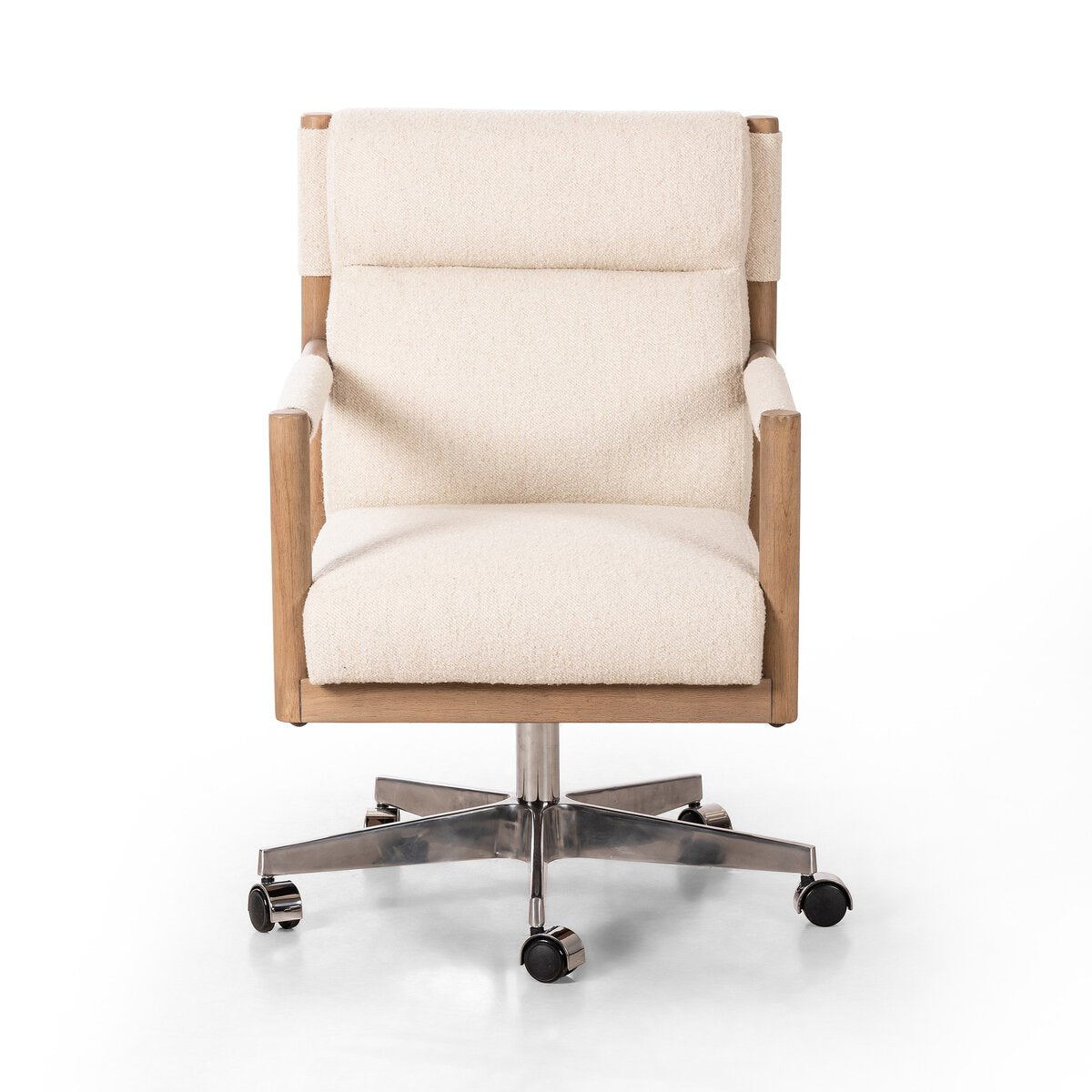 Overall Dimensions 22.00"w x 27.00"d x 34.00"hItem Number 237316-001Colors Charter Oatmeal, Polished Aluminum, Washed Natural ParawoodMaterials 69% Polyester, 23% Acrylic, 8% Flax/Linen, Aluminum, Solid ParawoodFabric PerformanceWeight 41.89 lbVolume 10.63 cu ftArm Height from Floor 24.00"Arm Height from Seat 5.50"Arm Length 23.00"Arm Width 1.75"Clearance from Floor 1 2.00"Distance between Legs (Front to Back) 1 14.50"Distance between Legs (Side to Side) 1 14.50"Seat Back Height 15.50"Seat Depth 1 18.50"Seat Height 1 18.50"Seat Height Adjustable (Max) 23.00"Seat Height Adjustable (Min) 18.50"Seat Width 1 19.00"Adjustable YesBack Cushion Attachment FixedBack Cushion Qty 1.00Casters 360-degree spinChair Arm Option With ArmCleaning Code