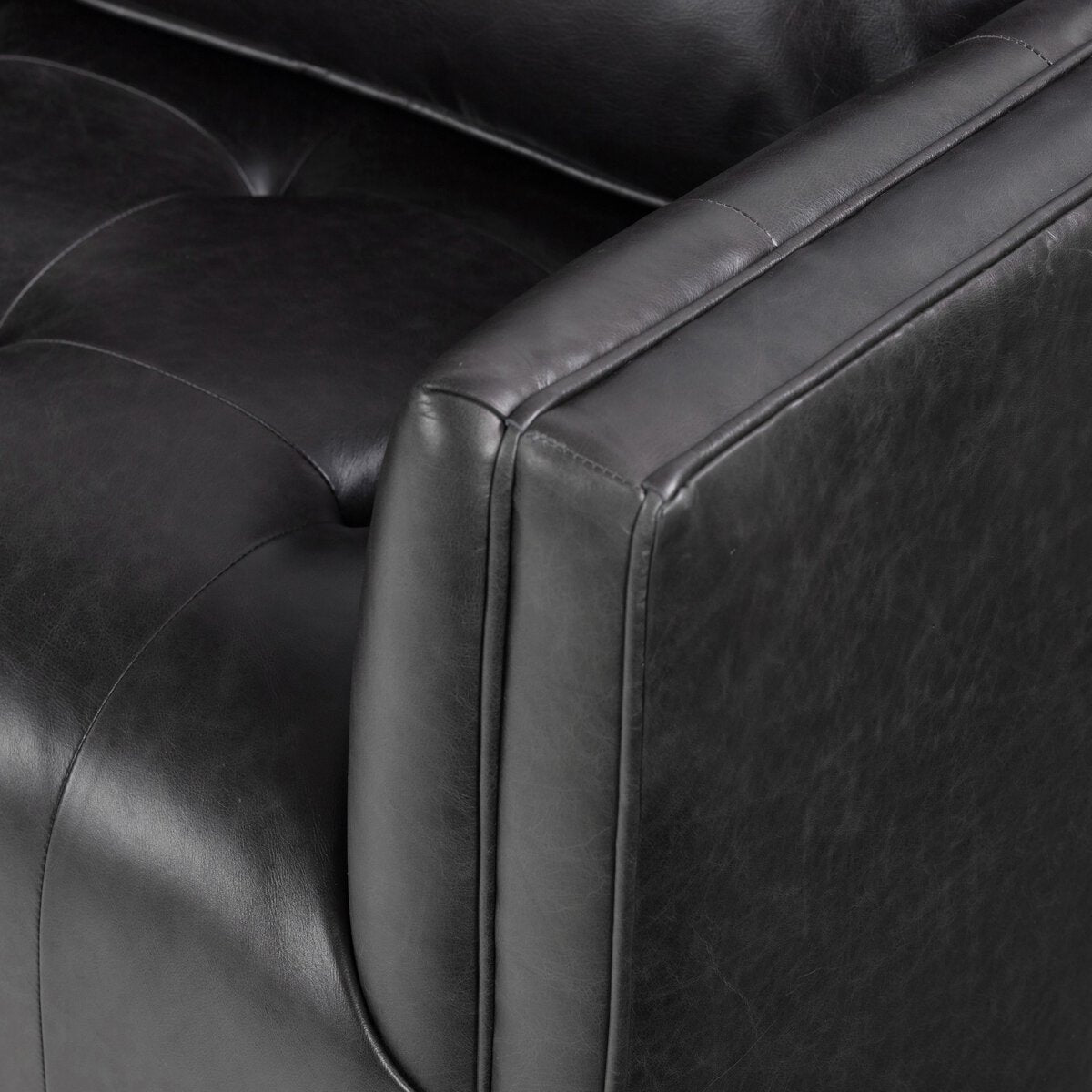 A subtle plinth parawood base supports nude top-grain leather seating, spurring the perfect fusion of comfort and sophistication with button-tufted seating and armrests.