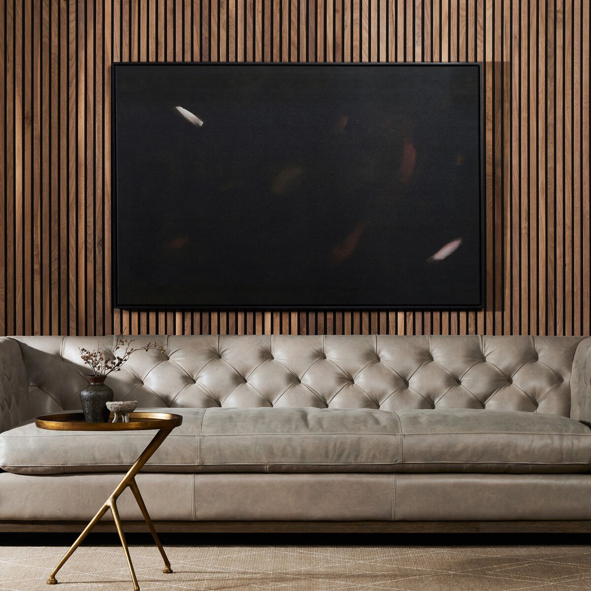 Overall Dimensions 30.00"w x 2.00"d x 20.00"hItem Number 238220-004Colors Black Maple Floater, Matte CanvasMaterials American Maple, Matte CanvasWeight 15.00 lbVolume 2.01 cu ftArtist Jess EngleMain Color BlackOrientation HorizontalPresentation Style Canvas Floater FramedSize MediumSubject AbstractSuite Koi Pond