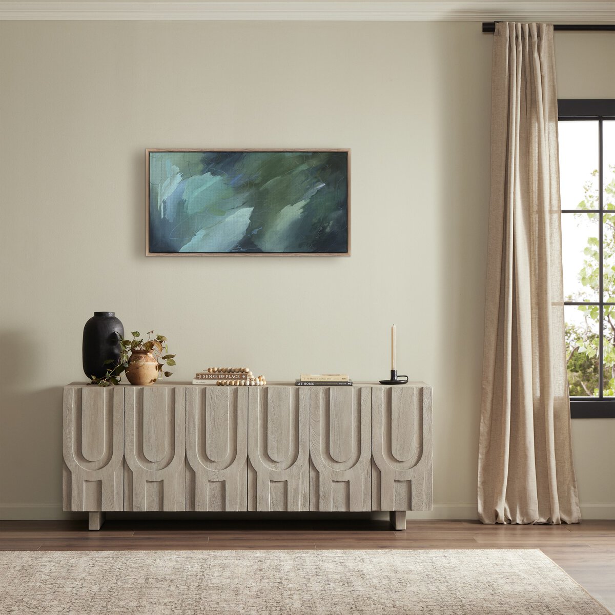 Overall Dimensions 32.00"w x 2.00"d x 17.00"hItem Number 251117-004Colors White Maple Floater, Matte CanvasMaterials American Maple, Matte CanvasWeight 20.00 lbVolume 2.37 cu ftArtist Katherine HunsakerMain Color BlueOrientation Double: Vertical & HorizontalPresentation Style Canvas Floater FramedSize MediumSubject AbstractSuite Labor of Love