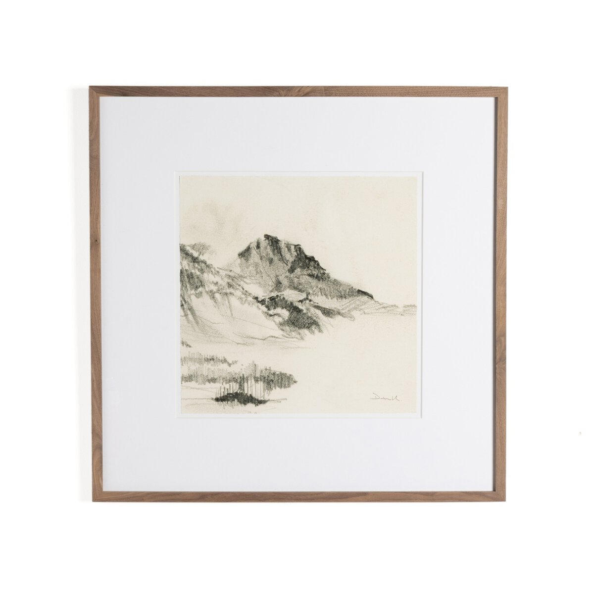 Overall Dimensions 32.00"w x 1.50"d x 32.00"hItem Number 238240-001Colors Rustic 1.5 Walnut, Textured Fine Art Paper, SRM890 Double Thick WhiteMaterials Walnut, Textured Fine Art Paper, Double Thick White MatWeight 20.00 lbVolume 2.79 cu ftArtist Dan HobdayMain Color Black & WhiteOrientation SquarePresentation Style Framed PaperSize MediumSubject Landscapes & SeascapesSuite land sketch
