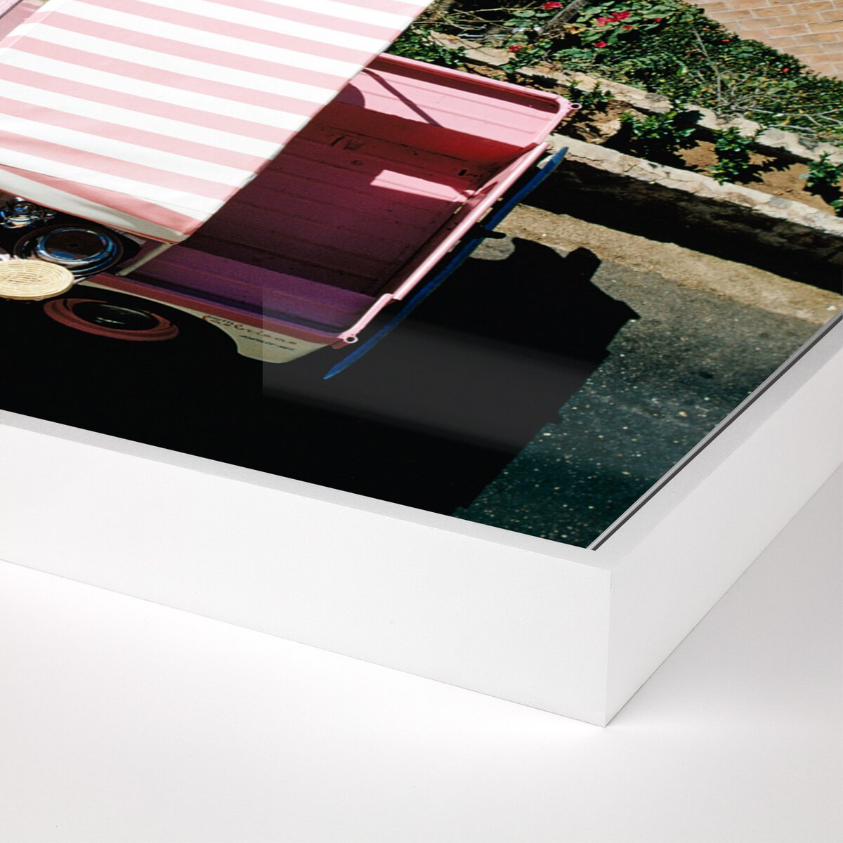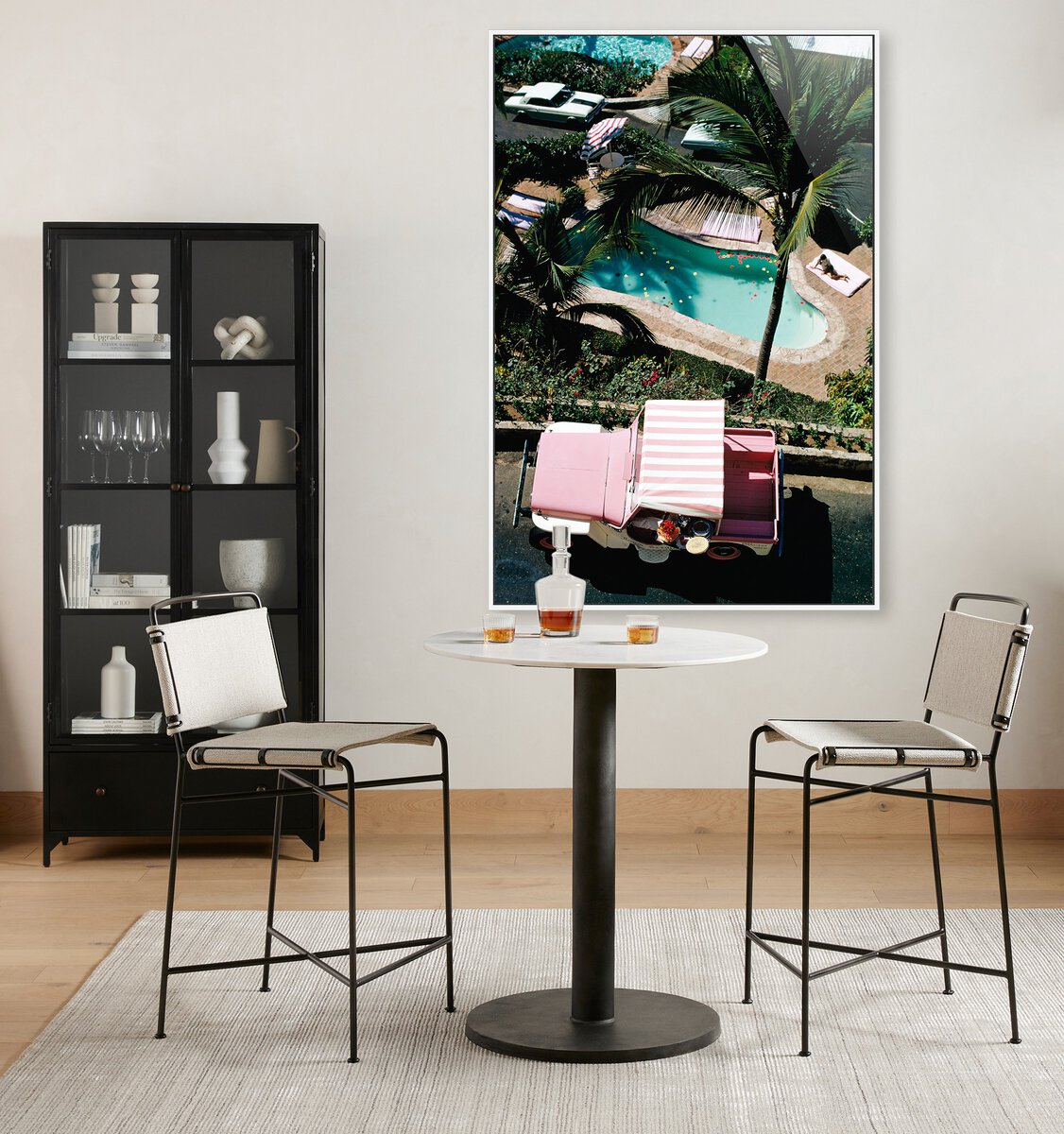 Overall Dimensions 24.00"w x 2.00"d x 36.00"hItem Number 237847-001Colors White Maple Floater, Gloss White MetalMaterials American Maple, Gloss White ChromaluxeWeight 20.00 lbVolume 2.75 cu ftArtist Slim AaronsMain Color MixedOrientation VerticalPresentation Style Framed MetalSize MediumSubject ArchitecturalSuite Las Brisas