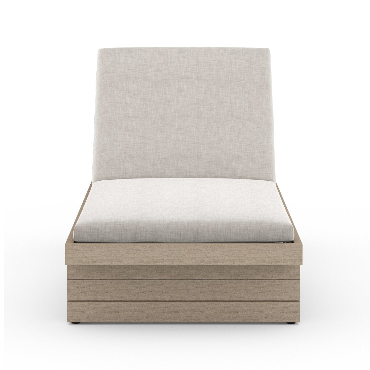 Recline in style, indoors and out. Solid FSC-certified teak offers clean, substantial framing for UV-resistant and water-repellent Sunproof fabric. Cover during inclement weather and when not in use. Our Weatherproof Single Outdoor Chaise Cover fits this chair.