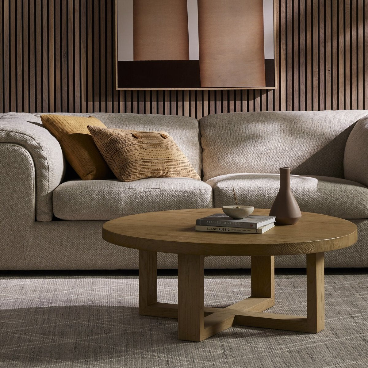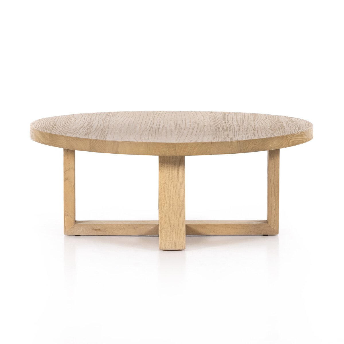 Made from solid natural nettlewood, an open cross-style base supports a thick, rounded tabletop finished with a soft hand.