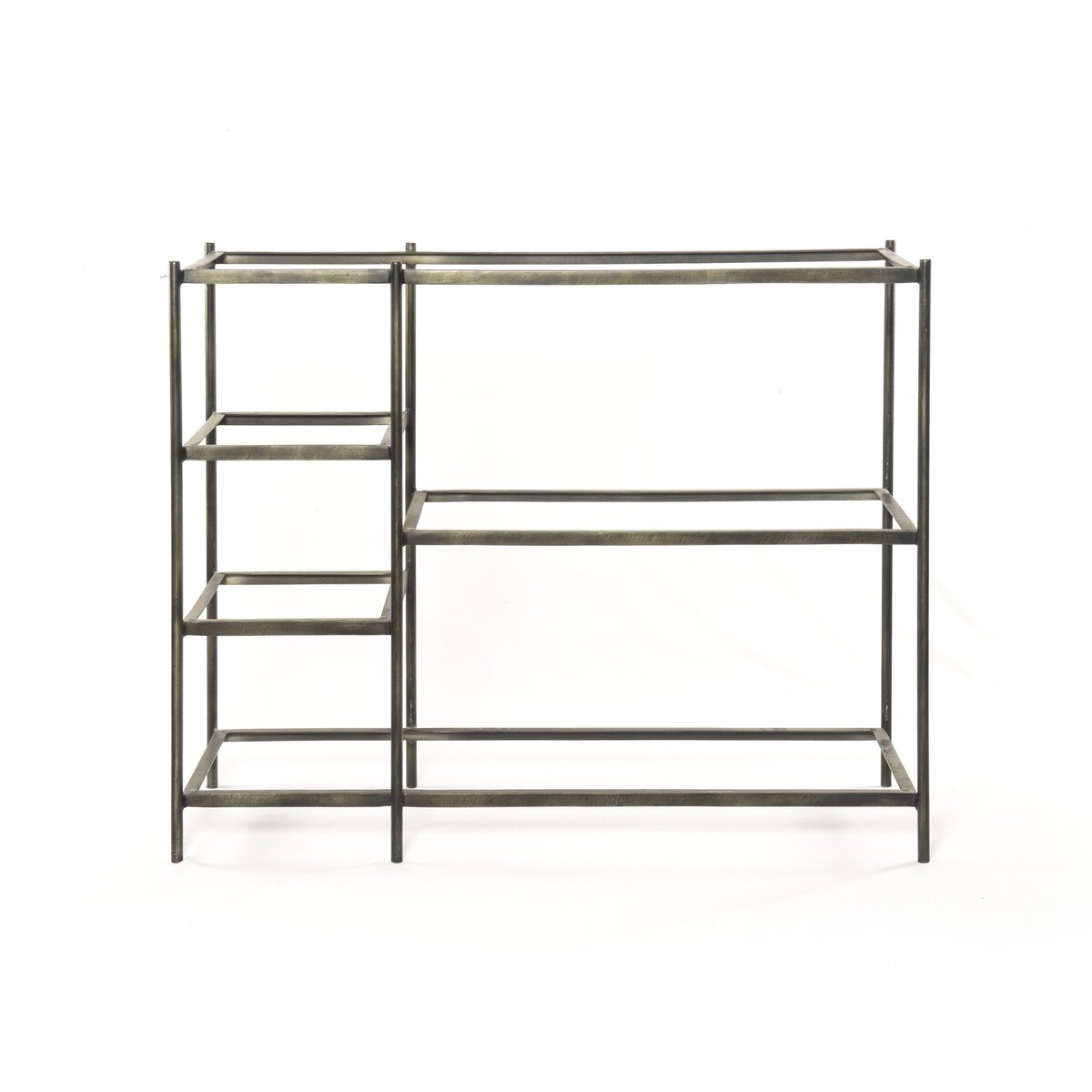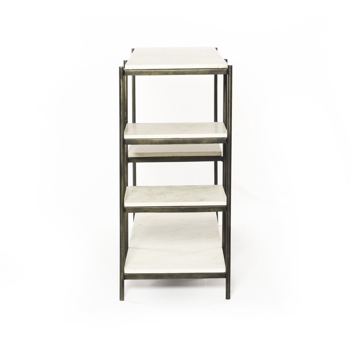 Overall Dimensions 40.00"w x 15.00"d x 33.00"hItem Number IMAR-146Colors Polished White Marble, Antique BrassMaterials Solid Marble, IronWeight 146.60 lbVolume 25.32 cu ftClearance from Floor 1 3.25"Distance between Legs (Front to Back) 1 14.00"Distance between Legs (Side to Side) 1 27.50"Fixed Shelf Depth 1 14.00"Fixed Shelf Depth 2 14.00"Fixed Shelf Depth 3 14.00"Fixed Shelf Depth 4 14.00"Fixed Shelf Height 1 0.50"Fixed Shelf Height 2 0.50"Fixed Shelf Height 3 0.50"Fixed Shelf Height 4 0.50"Fixed Shelf Width 1 39.00"Fixed Shelf Width 2 27.50"Fixed Shelf Width 3 11.00"Fixed Shelf Width 4 11.00"Interior Section Depth 1 14.00"Interior Section Depth 2 14.00"Interior Section Depth 3 14.00"Interior Section Depth 4 14.00"Interior Section Height 1 8.25"Interior Section Height 2 13.00"Interior Section Height 3 8.25"Interior Section Height 4 8.25"Interior Section Width 1 39.00"Interior Section Width 2 27.50"Interior Section Width 3 11.00"Interior Section Width 4 11.00"Leg/Base Depth 1 15.00"Leg/Base Height 1 33.00"Leg/Base Width 1 40.00"Tabletop Thickness 0.50"Door Type No DoorsDrawer Glide Type NoneDrawer Stop Material NoneFixed Shelf Qty 4.00Fixed Shelves YesFunctionality ShelvesInterior Section Quantity 4.00Shape Type RectangleSuite LilyWeight Capacity 100 lb