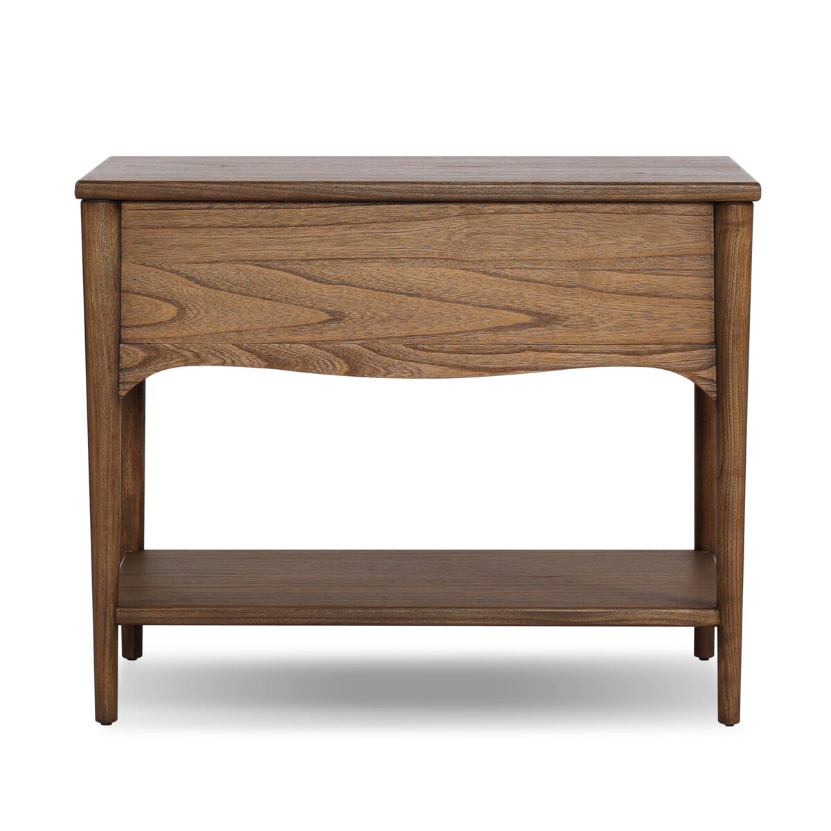 Overall Dimensions 33.50"w x 19.00"d x 27.00"hItem Number 251168-001Colors Amber Sungkai Veneer, Aged BronzeMaterials Thin Sungkai Veneer, Solid Sungkai, AluminumWeight 59.52 lbVolume 17.16 cu ftClearance from Floor 1 4.76"Drawer Depth 1 12.80"Drawer Height 1 5.39"Drawer Width 1 27.17"Fixed Shelf Depth 1 16.93"Fixed Shelf Height 1 0.98"Fixed Shelf Width 1 31.38"Interior Section Depth 1 15.80"Interior Section Height 1 10.31"Interior Section Width 1 30.24"Door Type No DoorsDrawer Glide Color SilverDrawer Glide Type Undermount MetalDrawer Joinery English DovetailDrawer Quantity 1.00Drawer Stop Material NoneFixed Shelf Qty 1.00Fixed Shelves YesFrame Construction Joinery Edge Banded VeneerFrame Construction Joinery Mortise and TenonFunctionality DrawersHas Soft Close Drawers YesInterior Section Quantity 1.00Shape Type RectangleSuite LizzyWeight Capacity 100 lb