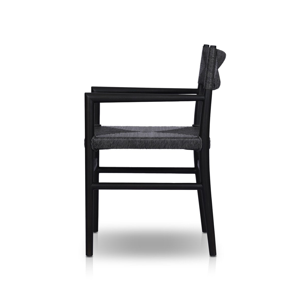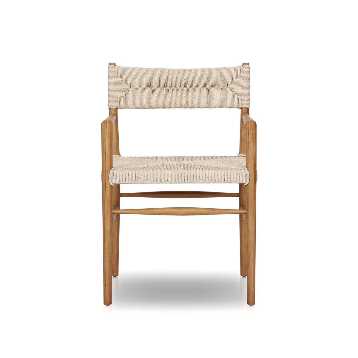 With a beautifully natural finish, slim, tapered teak frames this woven all-weather wicker outdoor dining armchair. Cover or store indoors during inclement weather and when not in use.