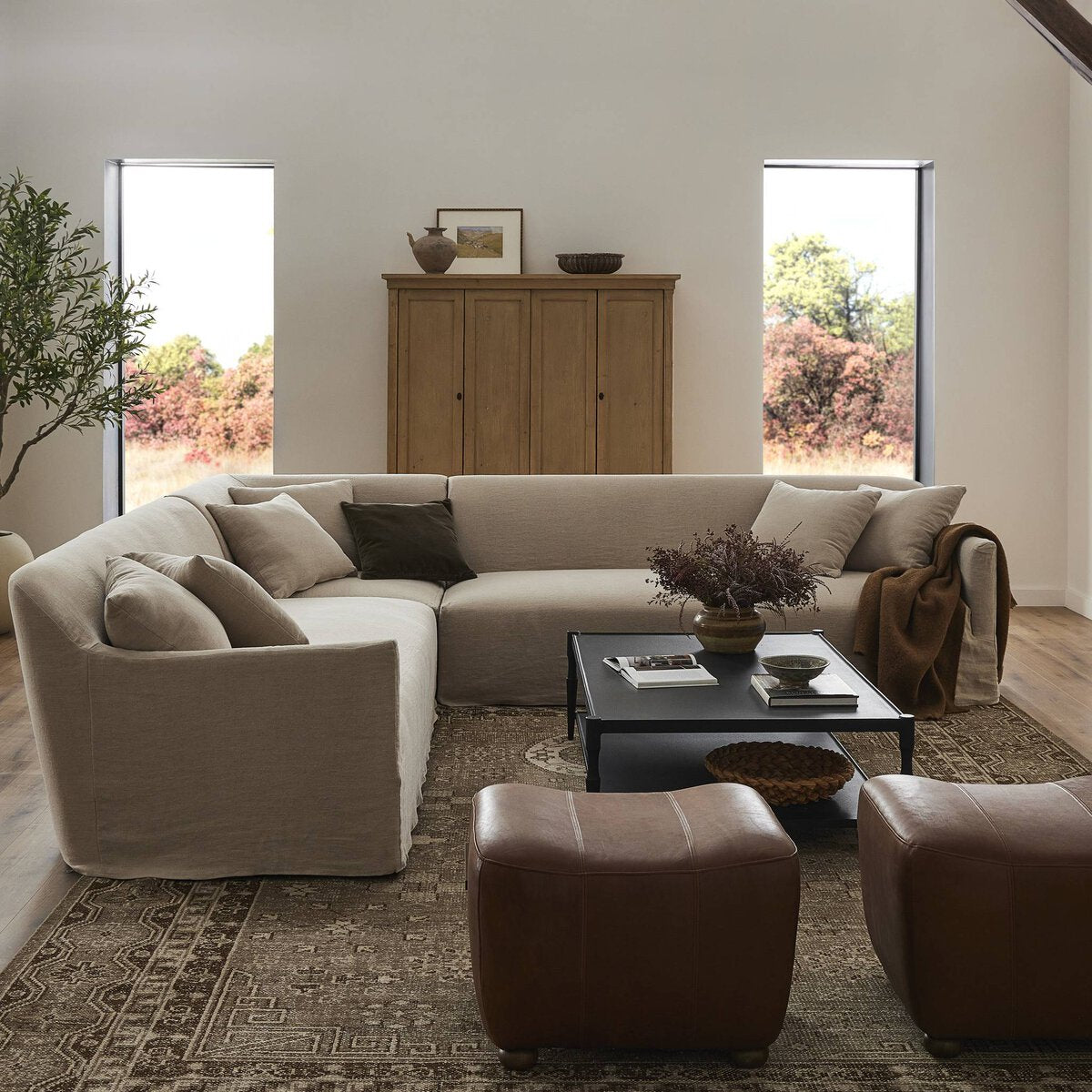 Overall Dimensions 123.75"w x 123.75"d x 32.50"hItem Number 249228-001Colors Broadway DuneMaterials 100% Flax/LinenWeight 273.37 lbVolume 170.75 cu ftBack Cushion Attachment LooseBack Cushion Detail Knife EdgeBack Cushion Detail Removable CasingChair Arm Option With ArmCleaning Code