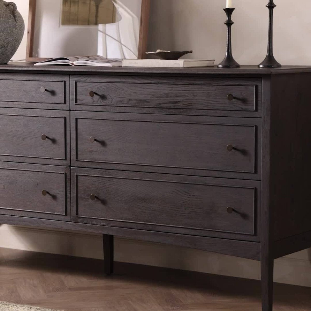 Overall Dimensions 77.00"w x 22.75"d x 36.75"hItem Number 246648-003Colors Aged Smoked Oak ResawnMaterials Resawn Oak Veneer, Solid OakWeight 261.25 lbVolume 59.01 cu ftClearance from Floor 1 7.99"Drawer Depth 1 15.04"Drawer Depth 2 15.04"Drawer Height 1 4.06"Drawer Height 2 6.81"Drawer Width 1 34.09"Drawer Width 2 34.09"Door Type No DoorsDrawer Glide Color SilverDrawer Glide Type Undermount MetalDrawer Joinery Butt JointDrawer Quantity 6.00Drawer Stop Material NoneFrame Construction Joinery Butt JointFunctionality DrawersHas Leveler YesHas Soft Close Drawers YesProtective Feet Leg LevelersShape Type WideSuite MaggieWeight Capacity 200 lb
