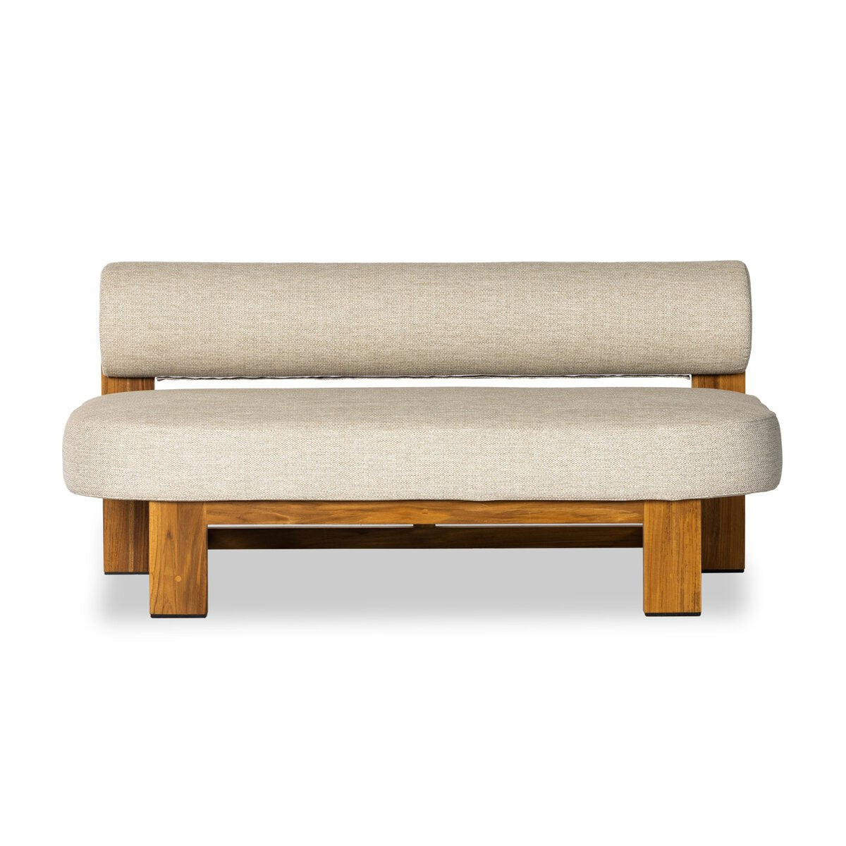 Overall Dimensions 59.75"w x 33.50"d x 27.50"hItem Number 233636-001Colors Faye Sand, Natural Teak-FSCMaterials 100% Olefin, Solid FSC®-Certified TeakWeight 67.46 lbVolume 33.73 cu ftBack Cushion Depth 1 9.84"Back Cushion Height 1 9.84"Back Cushion Width 1 57.48"Clearance from Floor 1 1.97"Distance between Legs (Front to Back) 1 25.00"Distance between Legs (Side to Side) 1 48.03"Seat Back Height 11.81"Seat Cushion Depth 1 27.76"Seat Cushion Thickness 1 5.91"Seat Cushion Width 1 59.84"Seat Depth 1 23.62"Seat Height 1 15.67"Seat Width 1 59.84"Back Cushion Attachment Semi-AttachedBack Cushion Detail Removable CasingBack Cushion Qty 1.00Chair Arm Option ArmlessCleaning Code